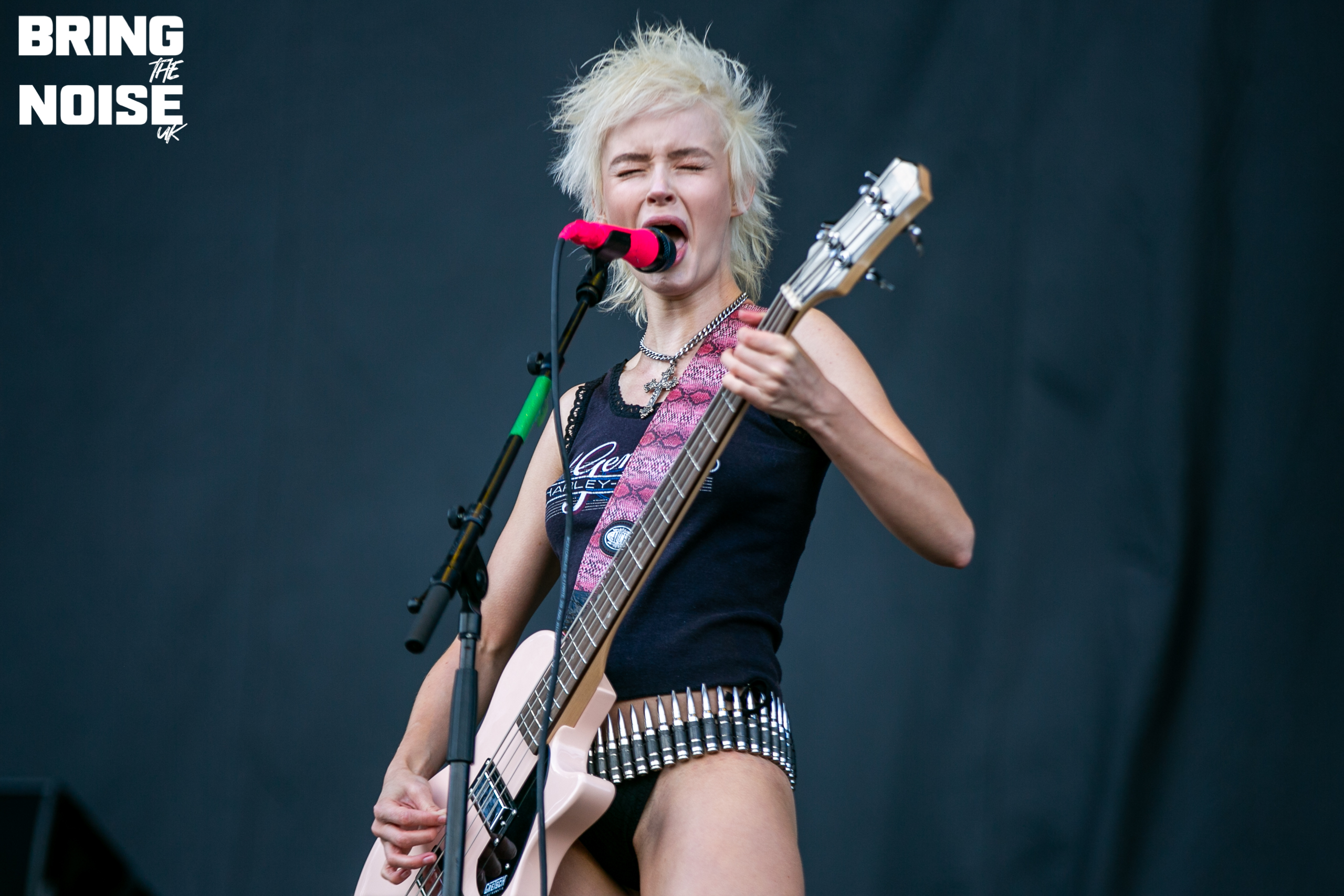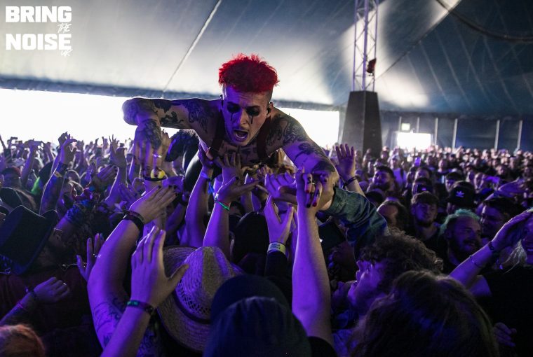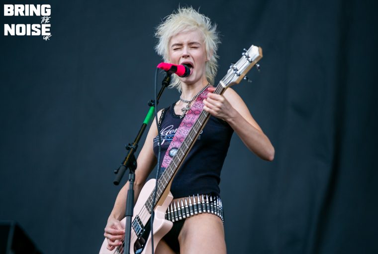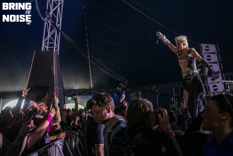 The Velveteers swaggered onto the Dogtooth Stage with as much effortless coolness as if they had just strolled off Sunset Strip in 1975. Singer Demi Demitro’s guitar playing and vocals have the charisma of Courtney Love but with the talent of Stevie Nicks. On the drums … Well, there were two. We don’t remember seeing twin drummers sharing a drum kit before, joined in the middle like a Siamese musical instrument, but it worked. Jonny Fig and Baby Pottersmith share the kit and trade smiles and nods as they pound in perfect unison, providing a thunderous backbone and foundation for Demitro to drape her stoner rock riffs and melodic choruses over to a crowd which swelled with each passing number. “Thanks so much for coming to check us out,” beams a clearly delighted Demitro from the stage as their short set ends a little too song for everyone tapping their feet and nodding in approval. We may not have known much about The Velveteers before this set but they will be on all our Spotify playlists this week. 6/10