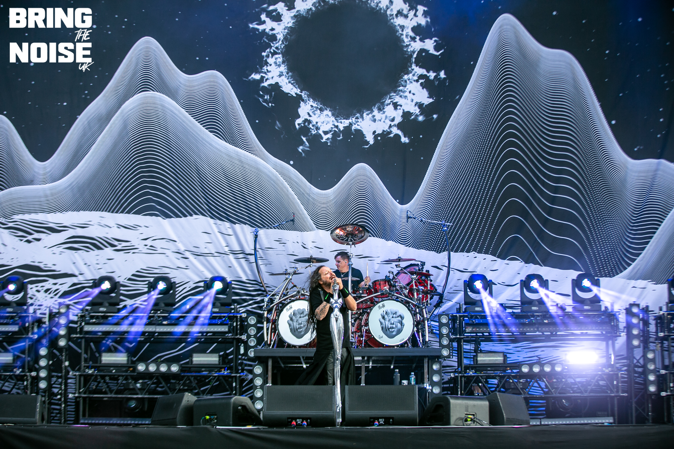 Nu-metal pioneers Korn have amassed an arsenal to rival any of the bands on the Download bill in their storied 29-year career. After all they are the kind of band who always crank up the volume to eleven and have hooks and riffs so heavy it is as if they have been dipped in lead. As always for us the bagpipe solo intro into Shoots and Ladders is the highlight of their set. It has been my favourite slice of Korn for a long time and they didn’t disappoint. But far from the only highlight, songs like A.D.I.D.A.S, Falling Away From Me, and Freak on A Leash, ensure the boot is firmly stomped on the gas throughout their set. They were in fine form but any band would miss the melody and heavy hands of keystone bassist Reginald ‘Fieldy’ Arvizu who was unable to travel due to ongoing issues. 7/10