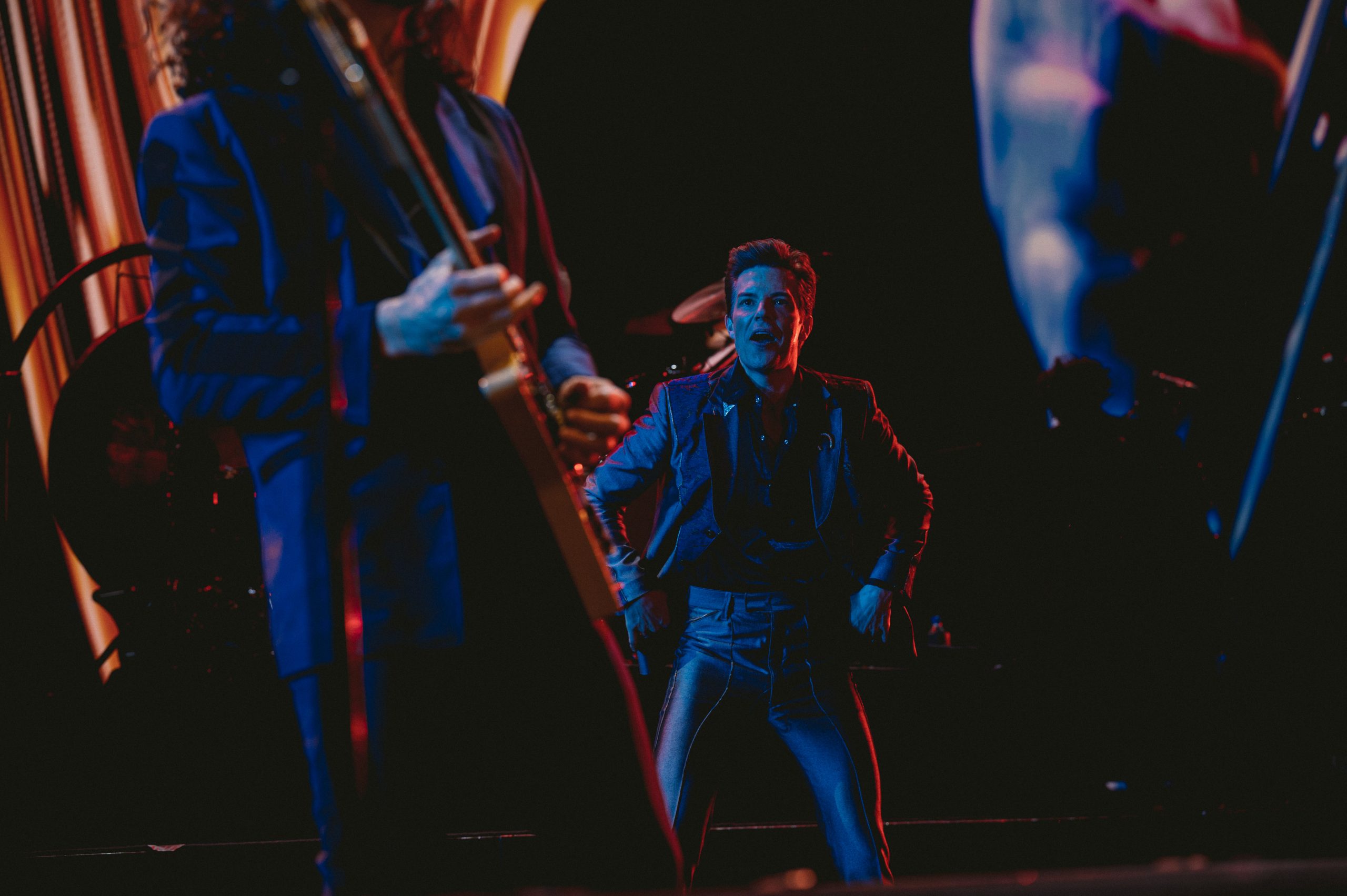 Brandon Flowers has gained a reputation for being one of the greatest frontmen and showmen out there, living up to this as he commandeered the crowd during fan favourite When You Were Young. Taking the time to remind everyone, “there ain’t nobody isolating tonight!” this rung true as the crowd united for a flawless rendition of their hit Smile Like You Mean It.