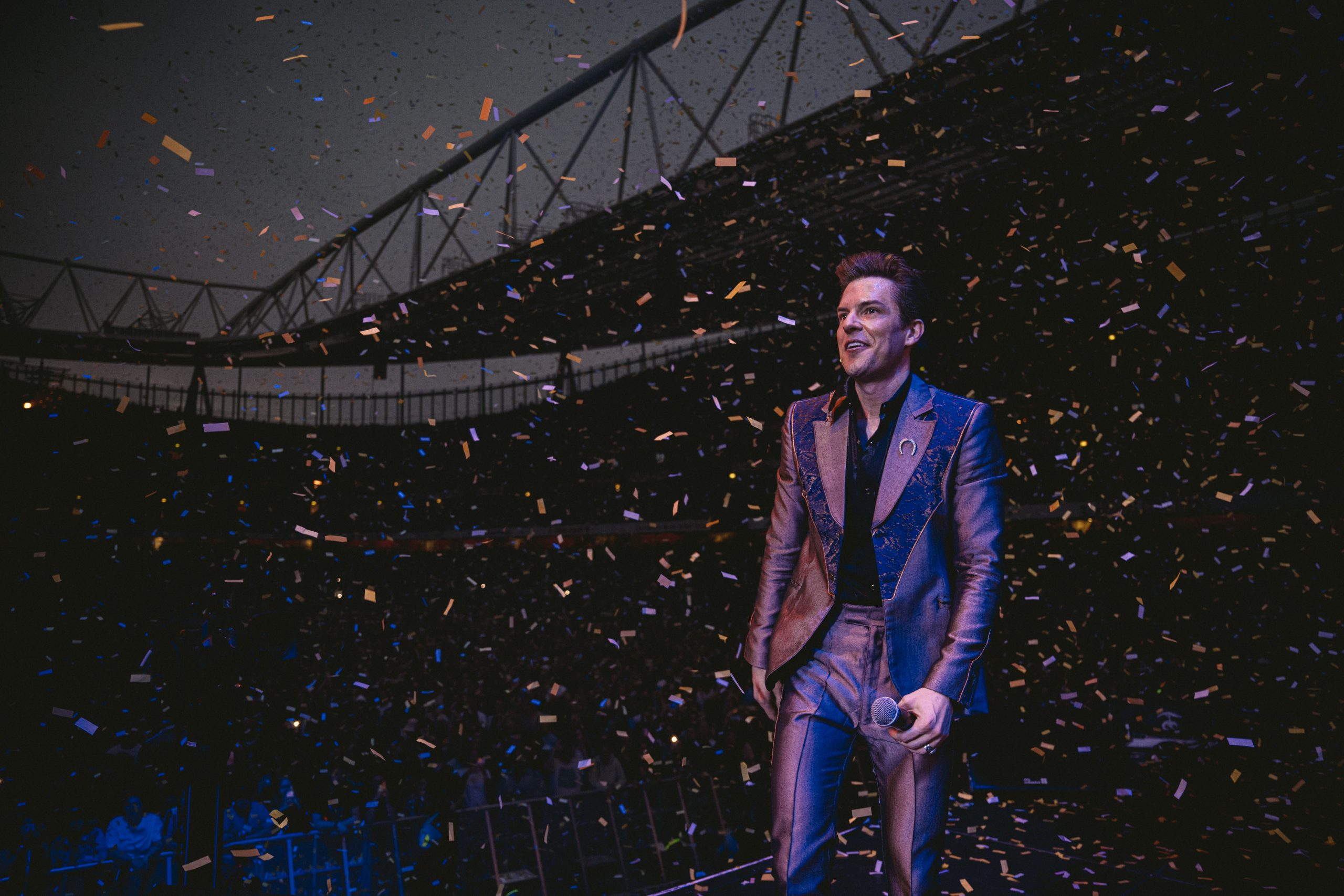 After a quick hoover of the stage (yes you read that right!), the London sun was setting and The Killers kicked off their set with Imploding The Mirage opener My Own Soul’s Warning. A sea of confetti engulfed the crowd and it was then we knew that Las Vegas’ finest were back in town!