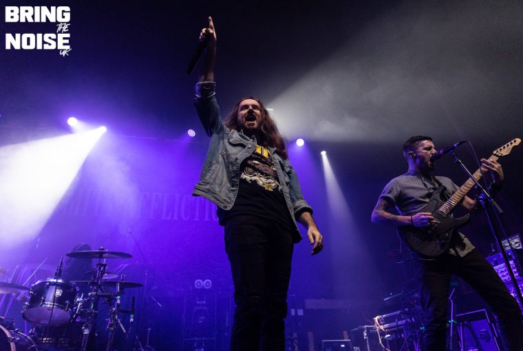 “I wrote this next song about being at rock bottom and feeling like no one can reach you” explains Amity vocalist Joel Birch before initiating Drag The Lake; a standout song taken from the band’s sixth studio album Misery. Whilst cathartic in its lyrics, one’s which are sung at the top of everyone’s lungs filling the room with pure vibrant warmth, dive below the songs surface and there is carefully hidden pain, agony and hurt and live its sentiment and meaning hits even harder, something that would come back to induce the tears for a second time around with the latter Don’t Lean on Me.