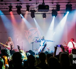 Dream Wife’s performance style combines punk-rock power with delightfully high camp interludes, to create an atmosphere that is quintessentially them. After So When Are You Gonna… Mjöll went around the stage seductively checking the temperature of her fellow bandmates. After asking Go how hot she was, the guitarist immediately apologised to her grandmother before revealing cross shaped nipple tape, before absolutely shredding it for Hot (Don’t Date a Musician). Even the bartender got involved, as Mjöll gestured towards them accusing them of probably also being a musician, as the song does. That’s the best part of a Dream Wife set – everybody is involved, and welcome, no matter what.