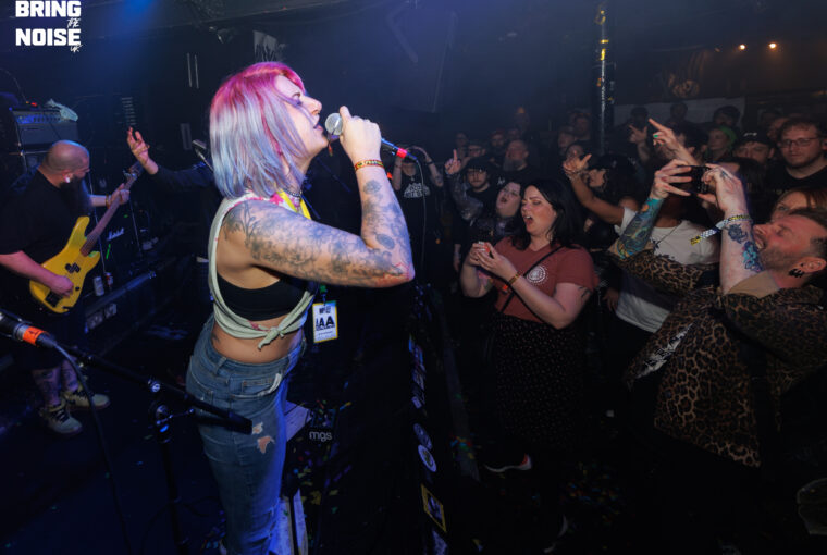 We headed off to the Breadshed next, arguably our favourite MPF venue, to see SHOOTING DAGGERS who have put a massive amount of work in over the last couple of years and judging by the large crowd that packed into the venue, it’s clearly paying off. The bands trippy approach to hardcore was received well by the crowd who pushed themselves up in front of the stage. Shooting Daggers bring to mind bands like Turnstile but with a distinct groove which is totally their own. The songs ooze confidence and are delivered with an effortless style. This band are constantly playing shows so make sure you go and check them out. New York’s SPACED were up next in the Breadshed and delivered a short but sweet set of raging modern hardcore. The large crowd got caught up in the energy as front woman Lexi Reyngoudt paced back and forth, kicking and screaming as she went. The entire band looked to be having the time of their lives and clearly the bands relentless touring schedule has given them the confidence to lead the charge for the American hardcore in 2024. 8/10