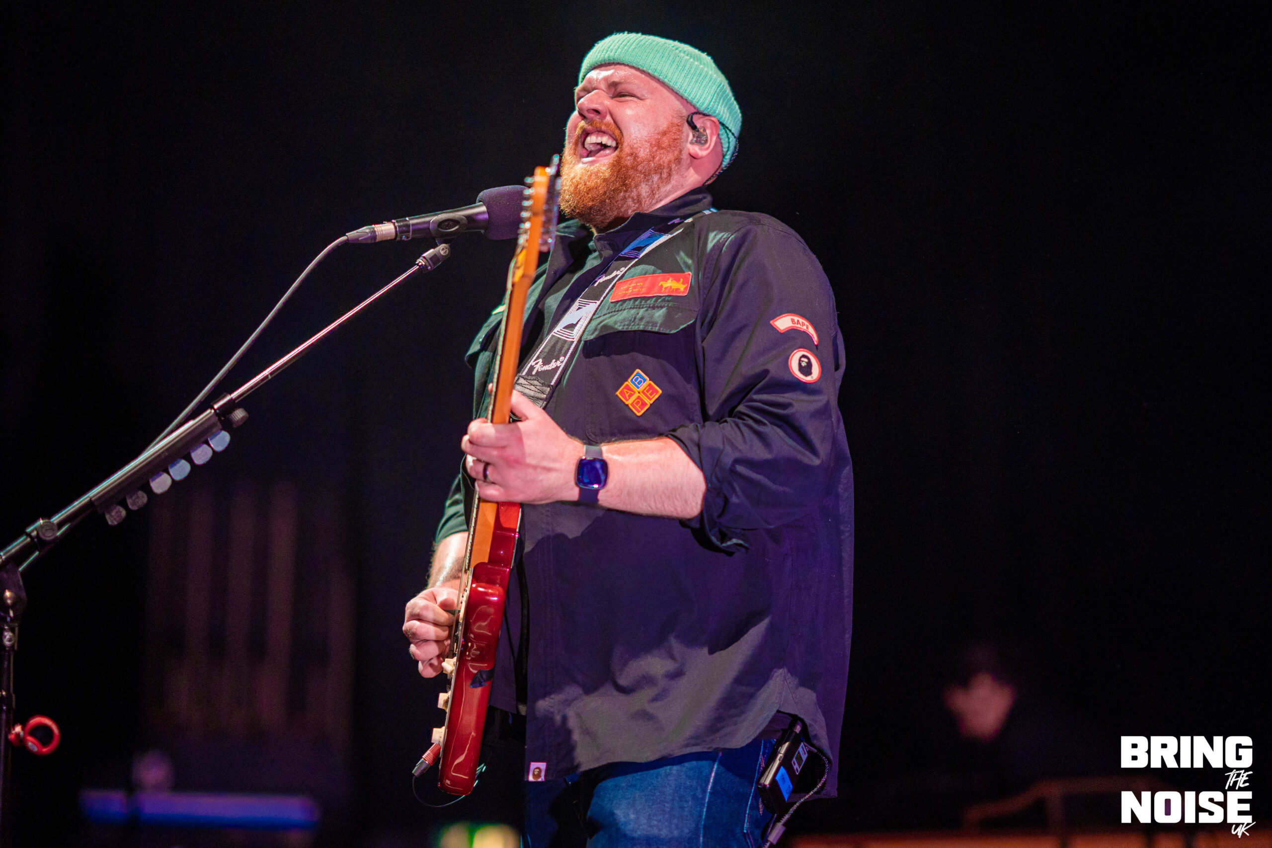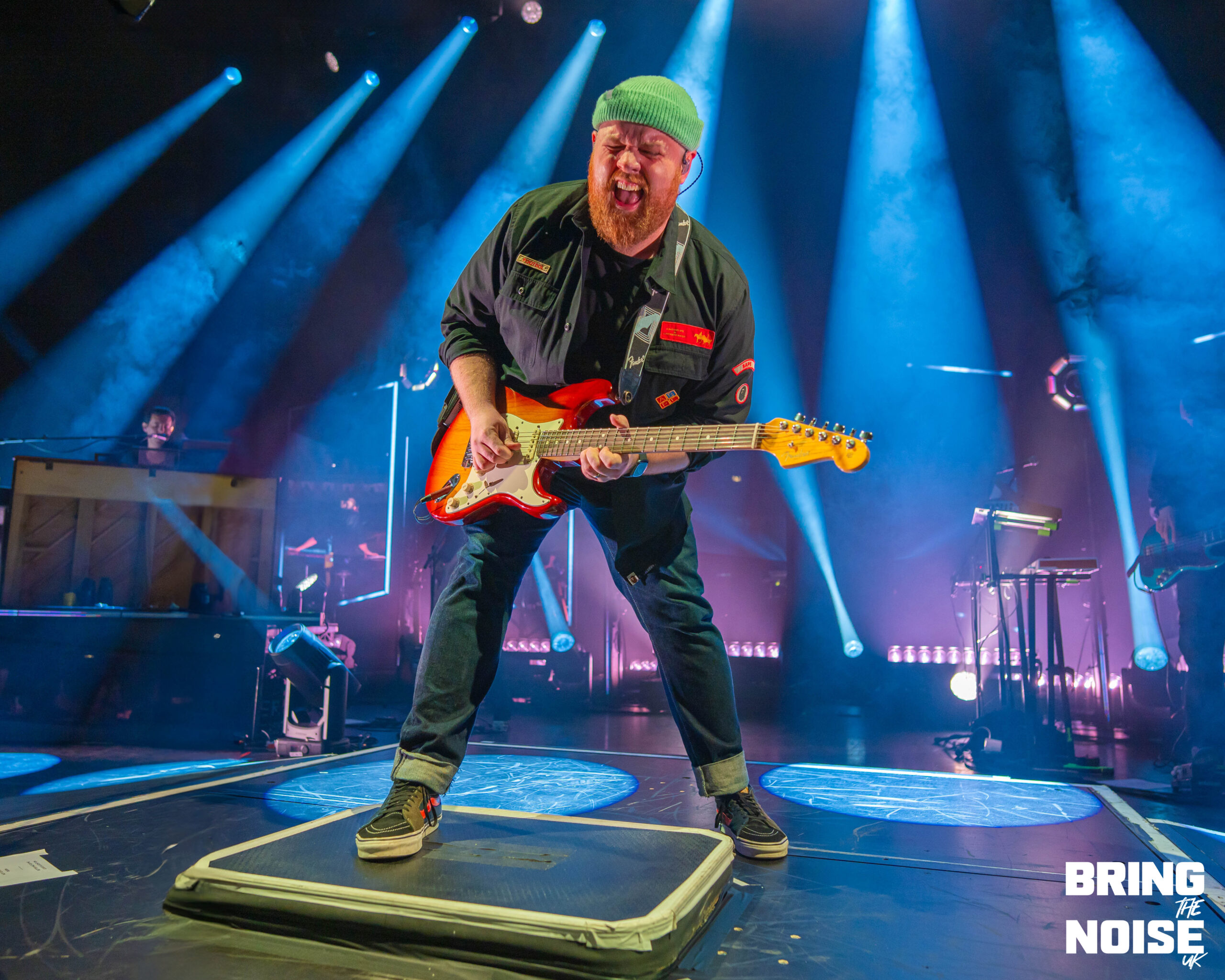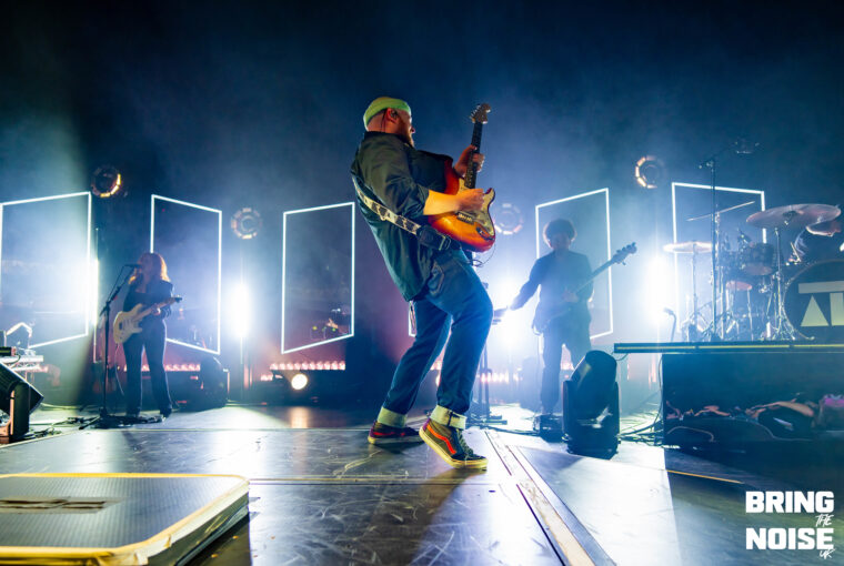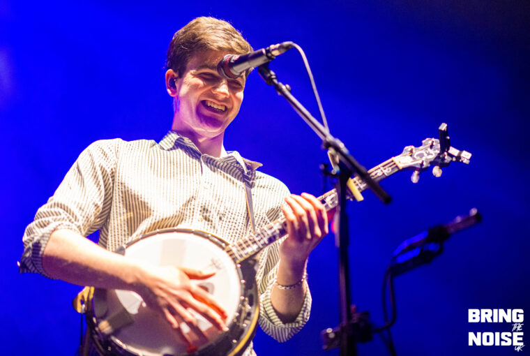 First up, though, came the lads in Kingfishr. The trio’s recent success has been nothing short of astounding, with sold out show following sold out show — including two sold out nights at the iconic 3Olympia in Dublin — and their recently announced Oct/Nov tour doesn’t seem to have fallen far from the proverbial tree. With the three taking to the stage, guitars and banjos in hand, it didn’t take long to understand why. From the opening notes of Heart In The Water, frontman Edmond Keogh’s voice booming through the sold out Eventim Apollo and cascading over the thousands arrayed before them, the realisation began to set in: acoustic, unadorned, brilliance. The crowd-pleasing jubilance of Headlands — “the police turned up at our farm, it was fantastic craic”, we were told — and the frankly absurd roars of eyes don’t lie followed shortly after, the three’s sound blissfully clear in its mixing, before Kingfishr made a rather rogue choice, descending into the middle of the crowd for Shot In The Dark. A hard ask for Eventim Apollo, the hundreds seated up in the balcony having to stand and crane their necks for even a glimpse of their little void opened up in the crowd, but the heart-warming visual of hundreds of phone lights blasting across the room surely made up for it.