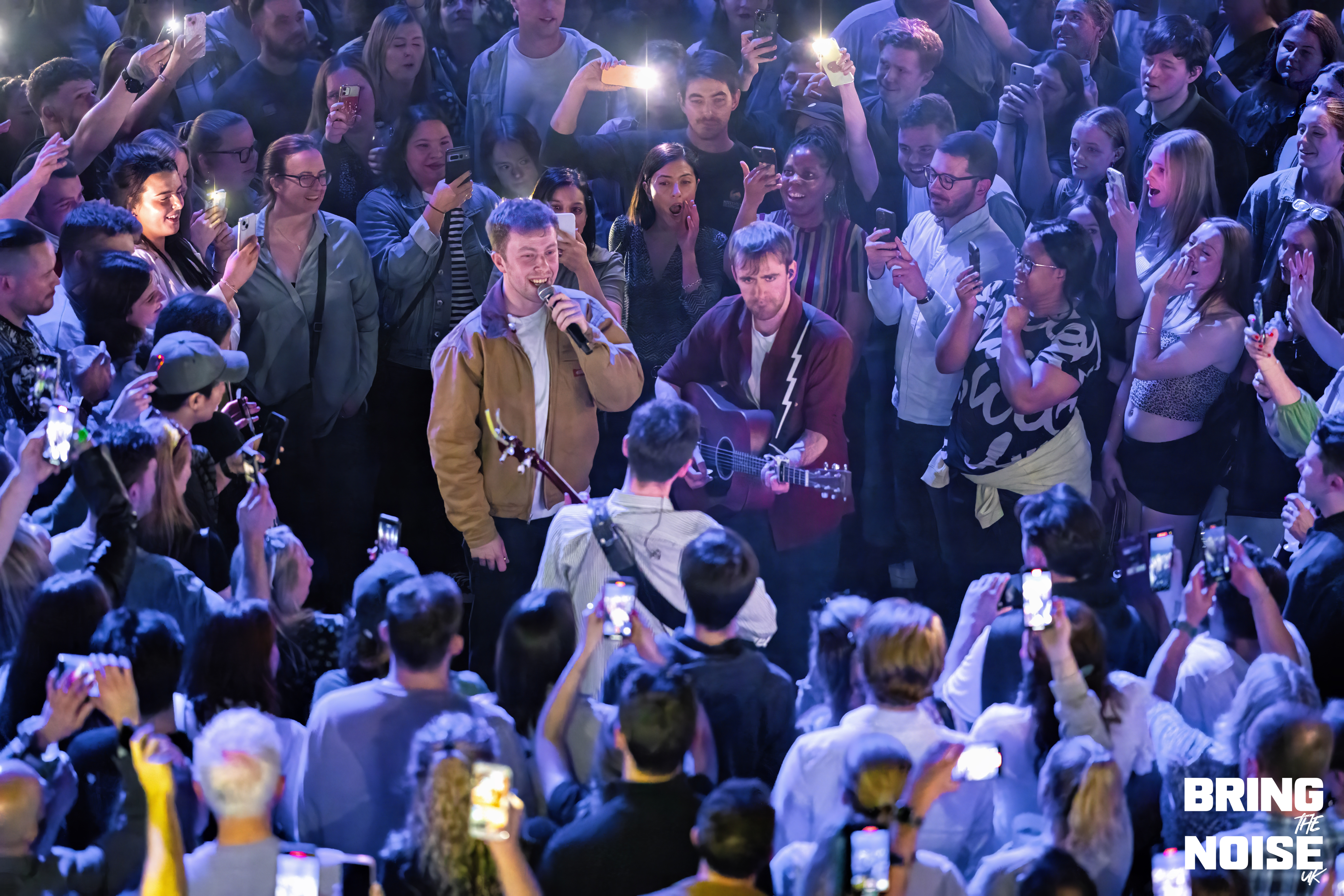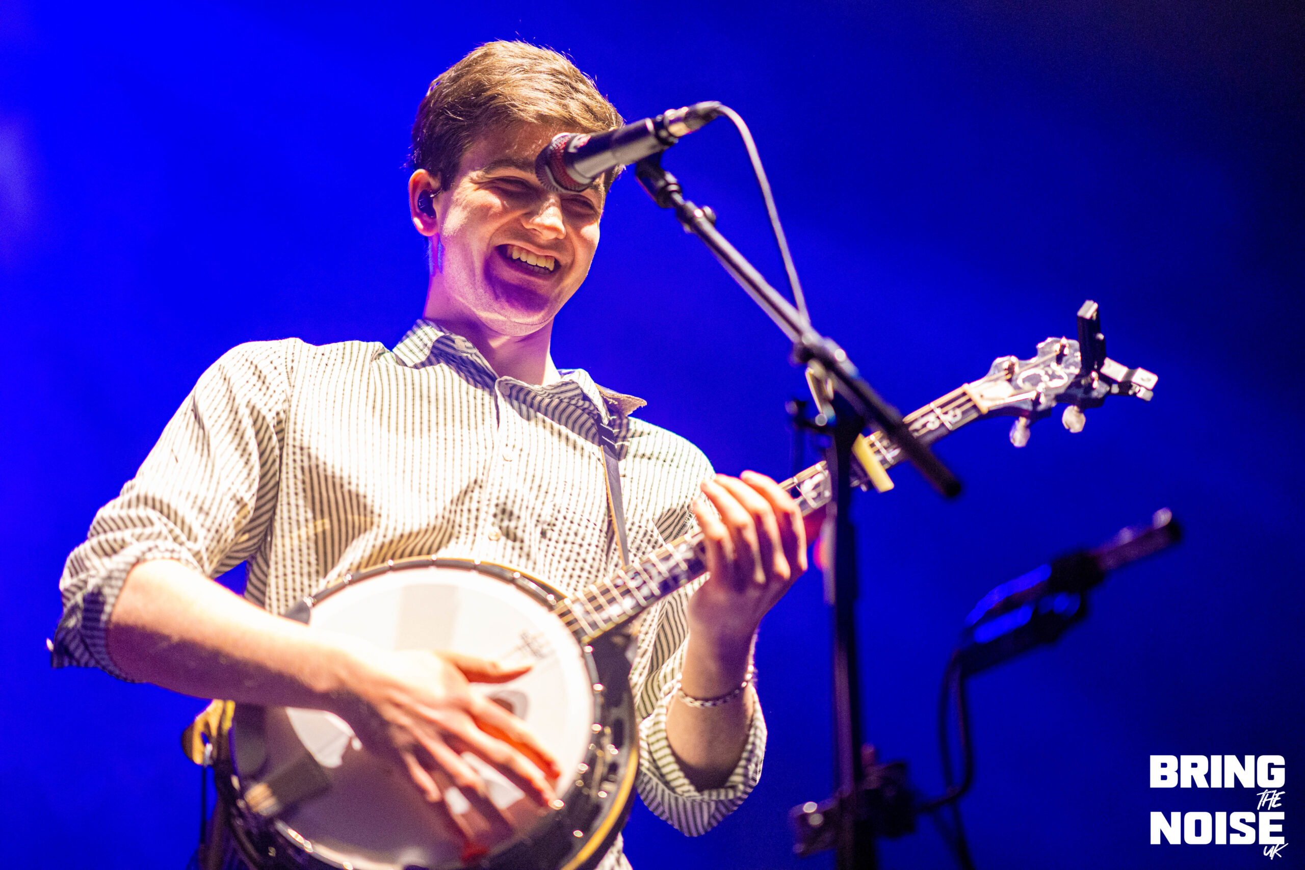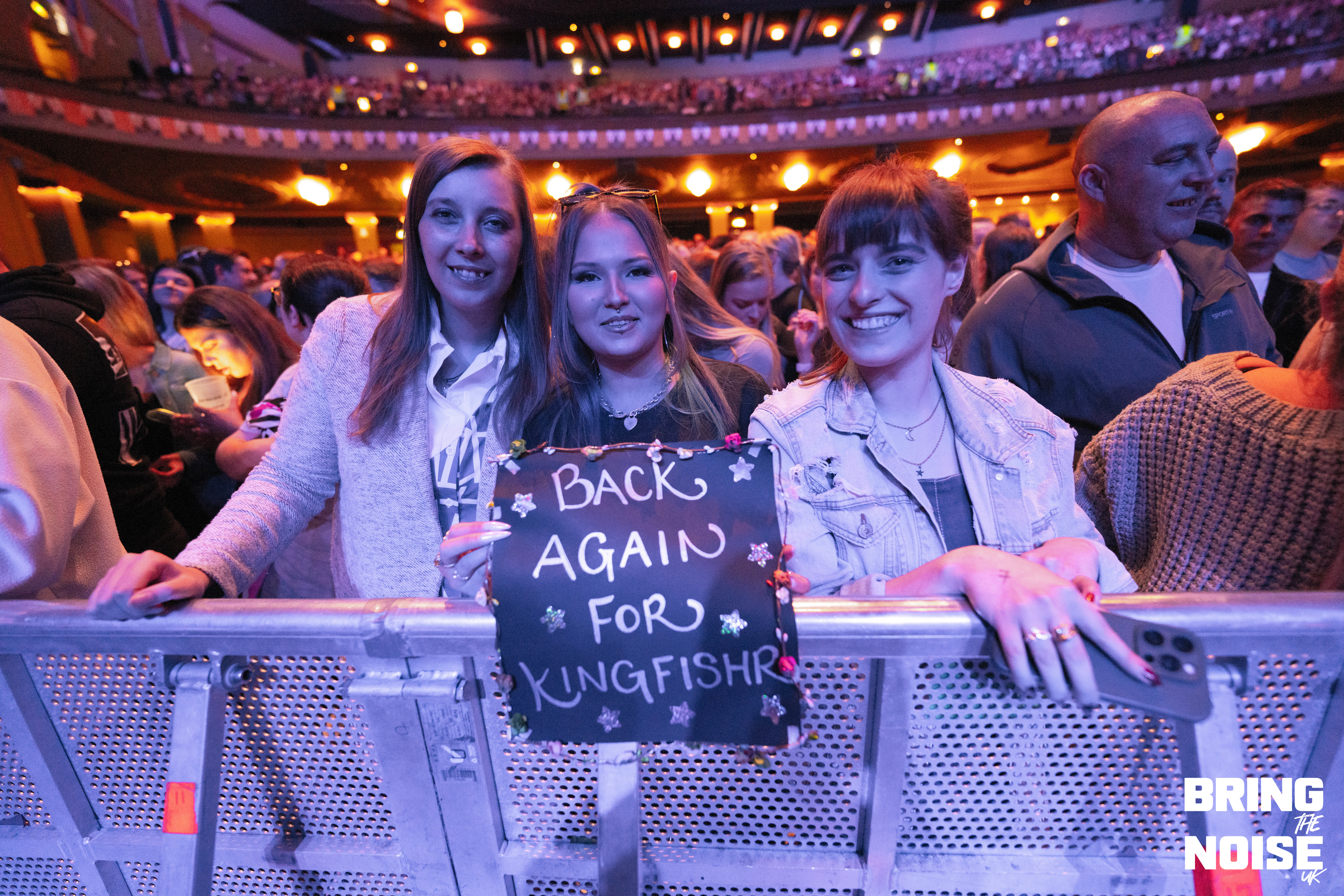First up, though, came the lads in Kingfishr. The trio’s recent success has been nothing short of astounding, with sold out show following sold out show — including two sold out nights at the iconic 3Olympia in Dublin — and their recently announced Oct/Nov tour doesn’t seem to have fallen far from the proverbial tree. With the three taking to the stage, guitars and banjos in hand, it didn’t take long to understand why. From the opening notes of Heart In The Water, frontman Edmond Keogh’s voice booming through the sold out Eventim Apollo and cascading over the thousands arrayed before them, the realisation began to set in: acoustic, unadorned, brilliance. The crowd-pleasing jubilance of Headlands — “the police turned up at our farm, it was fantastic craic”, we were told — and the frankly absurd roars of eyes don’t lie followed shortly after, the three’s sound blissfully clear in its mixing, before Kingfishr made a rather rogue choice, descending into the middle of the crowd for Shot In The Dark. A hard ask for Eventim Apollo, the hundreds seated up in the balcony having to stand and crane their necks for even a glimpse of their little void opened up in the crowd, but the heart-warming visual of hundreds of phone lights blasting across the room surely made up for it.