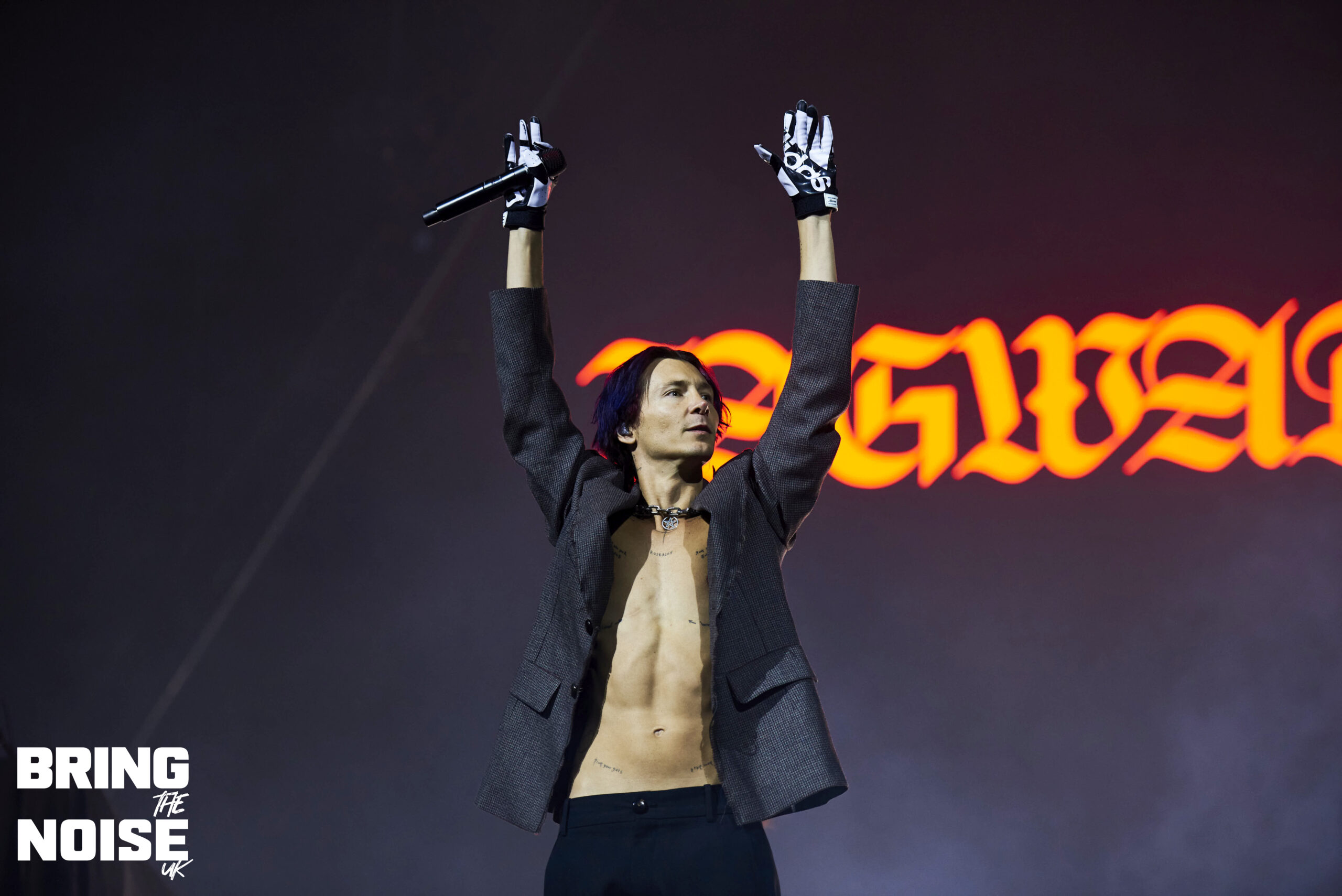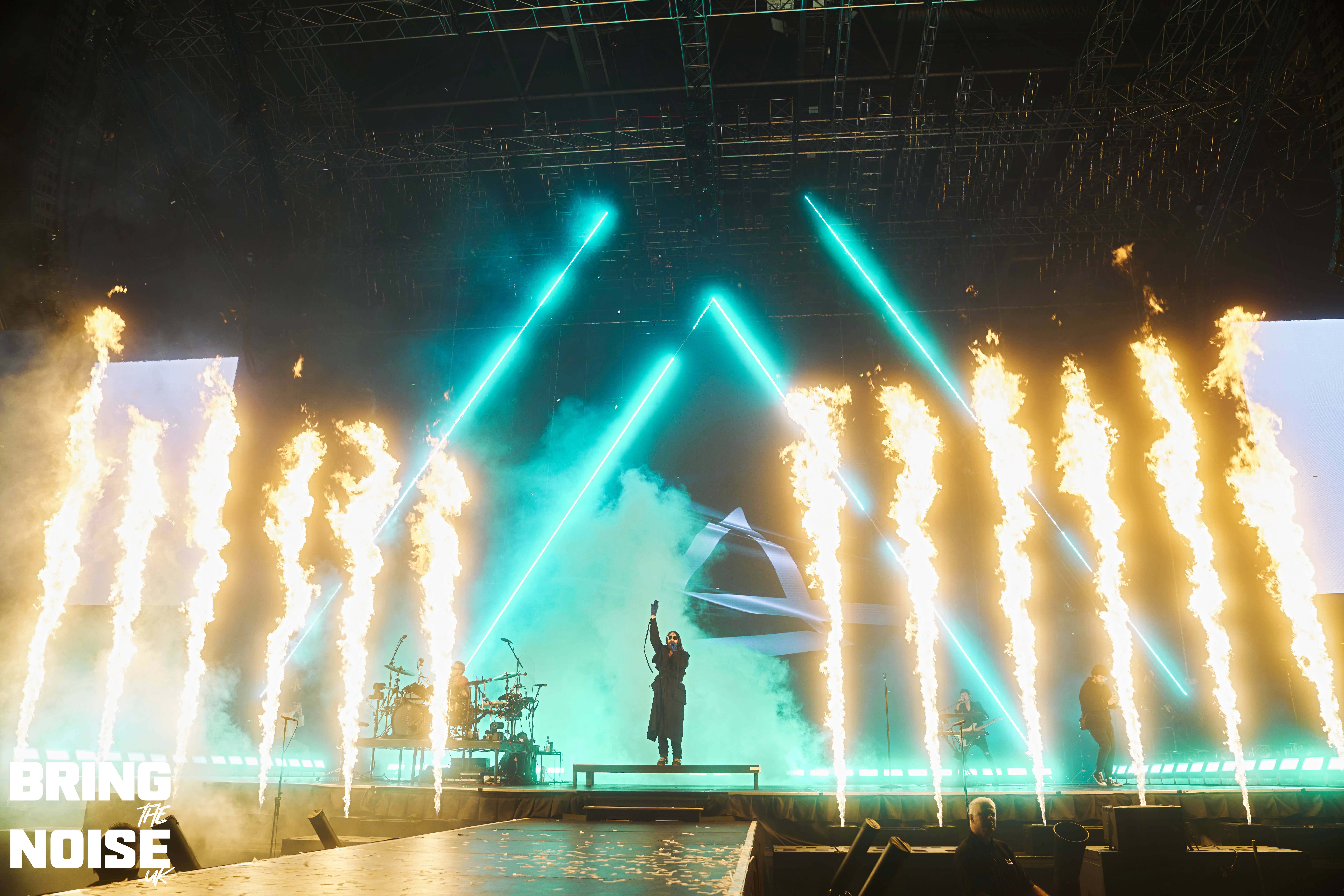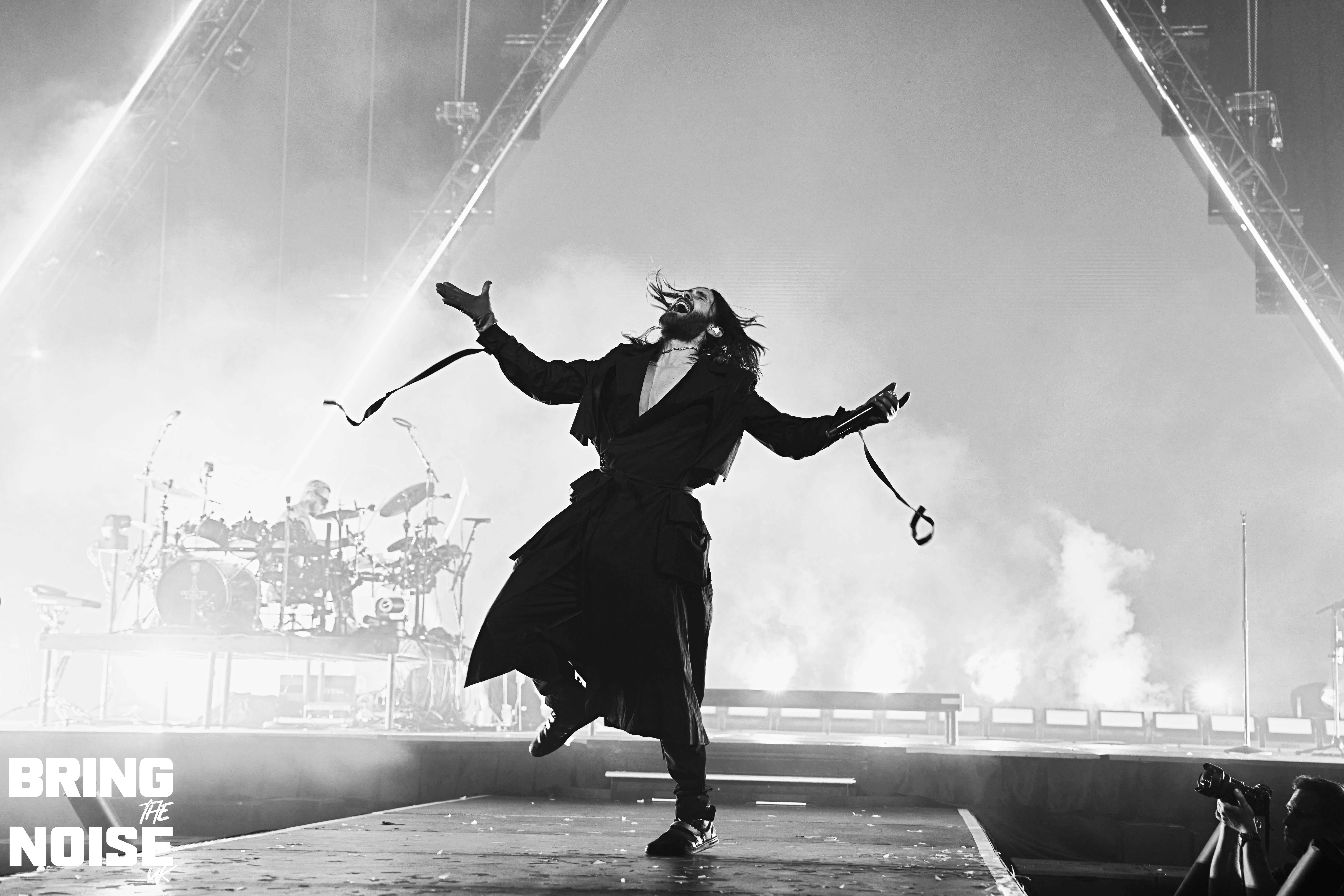 On a very poignant day when D-Day commemorations were happening around the UK and France Thirty Seconds To Mars brought their re-arranged tour to the OVO Hydro arena by the banks of the river Clyde. Singer and actor Jared Leto had acting commitments in April hence the tour being rescheduled to June, but it was well worth the wait that’s for sure. There would have been around 7000 in the arena at 7.30pm when Jagwar Twin (aka Roy English) took to the stage in traditional Scottish dress commenting that it feels pretty god damn sexy! Hailing from Orange County, California the trio on stage played a mixture of alternative rock, rap and breakbeats mainly from the 2022 album 33 with The Circle and Down To You opening the set. Soul Is A Star was a very emotional moment for Roy English, the guitarist plays an amazing solo before English tells the story of how last year was one of the hardest of his life, no money, no home, the phone torches were out for this special moment. This was another great example of how open modern musicians are to talking about their mental health. The mood was lightened a little after this as the crowd joined in a short version of the Scottish classic Ye Cannie Shove Yer Granny Aff The Bus!