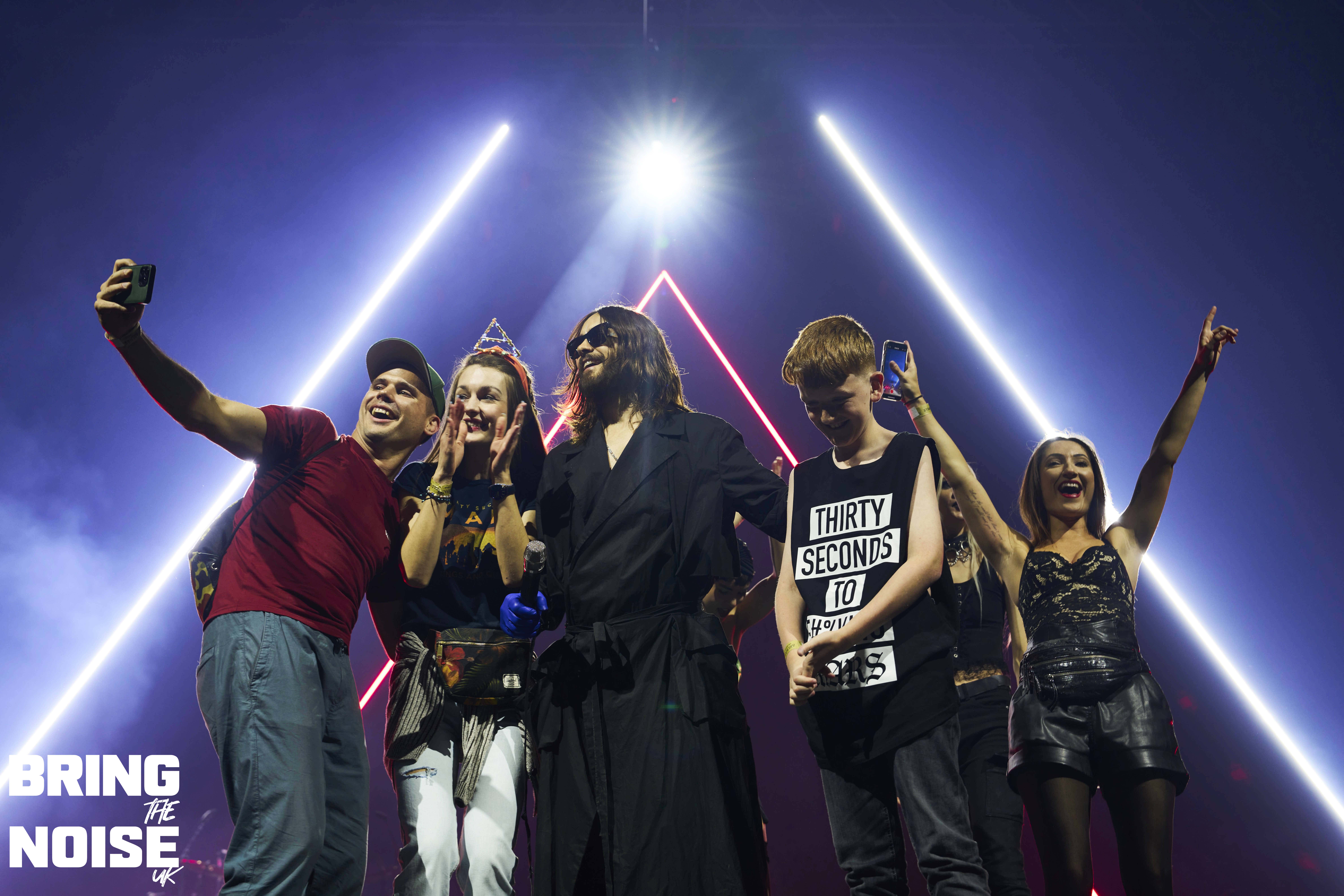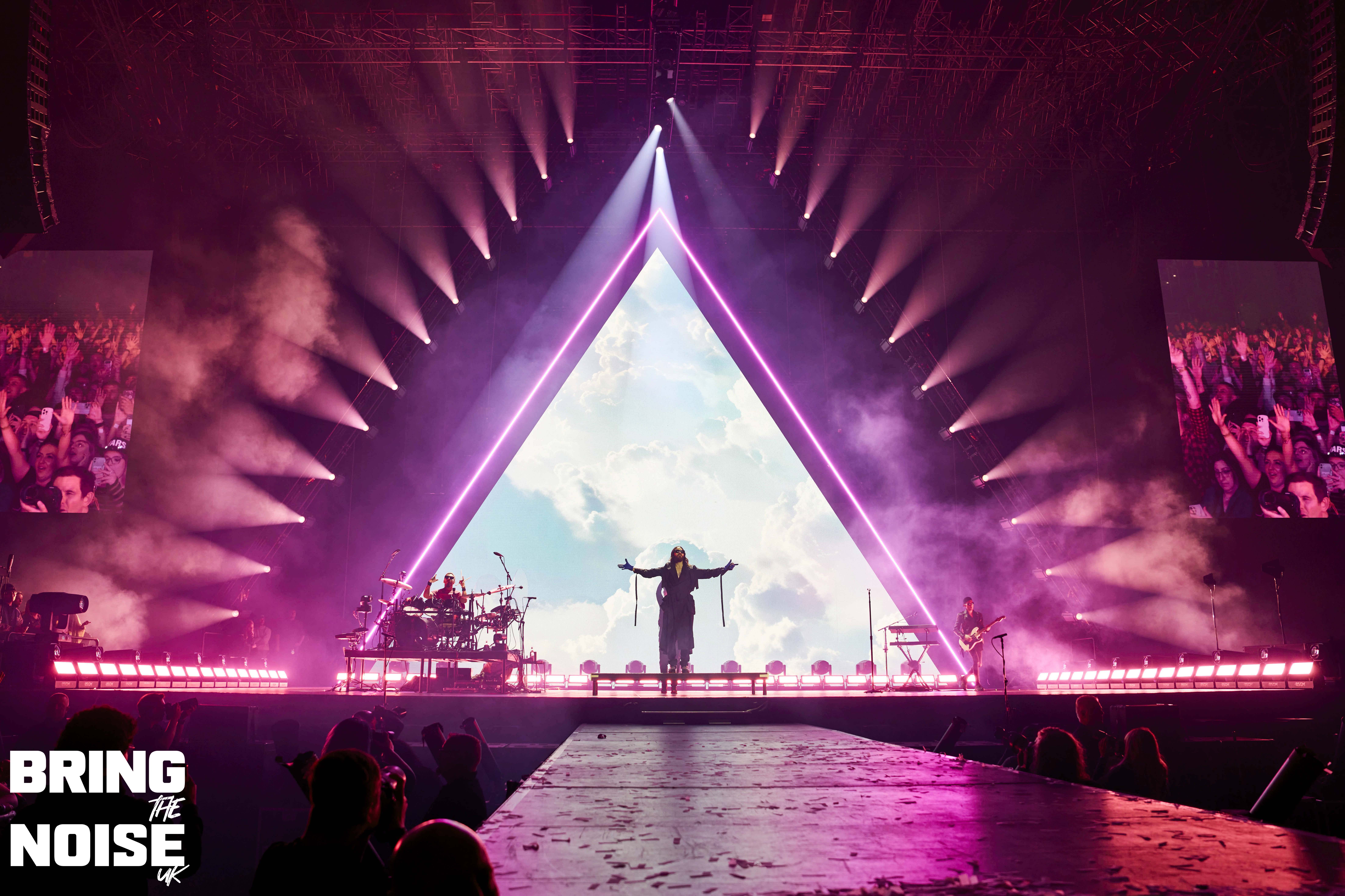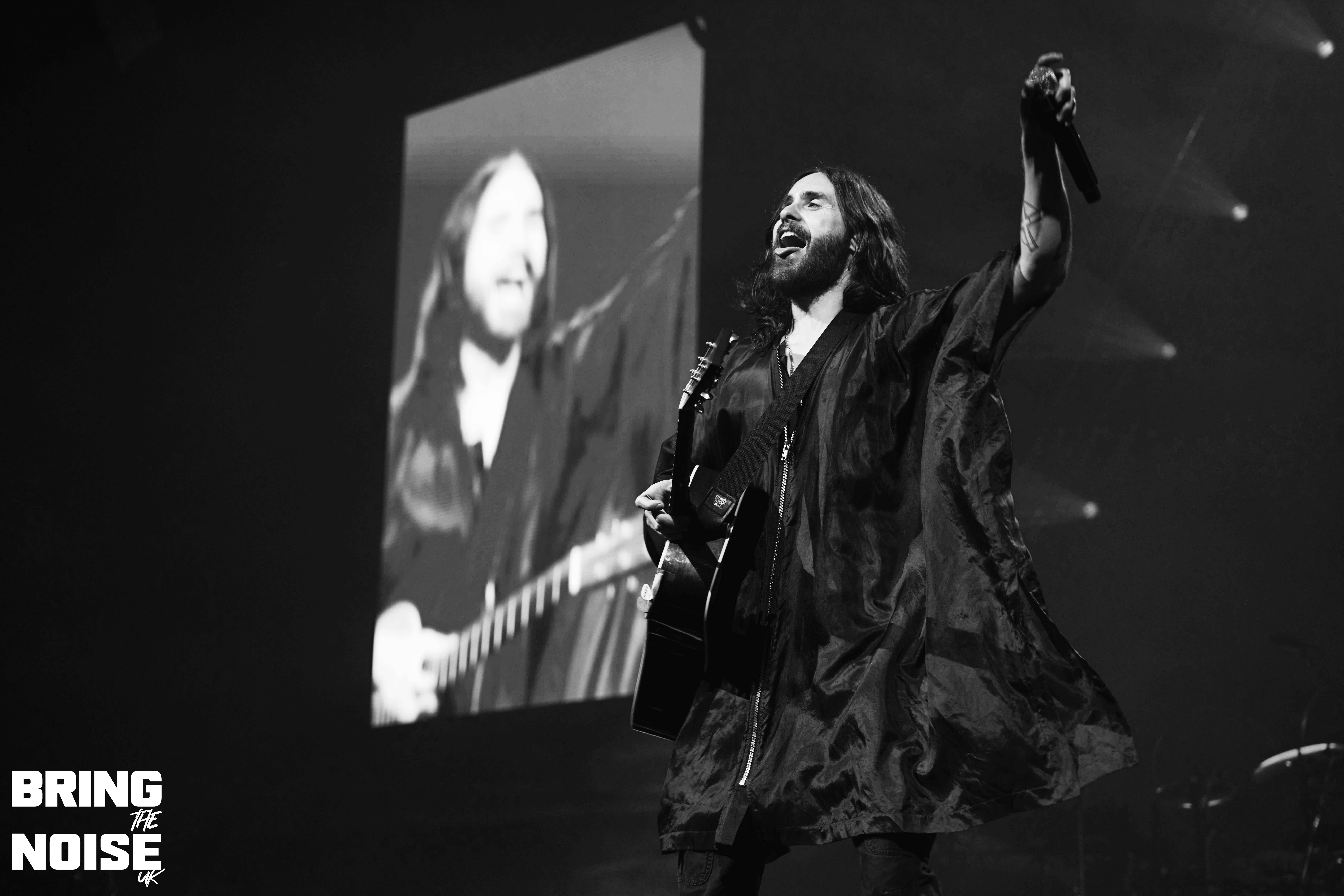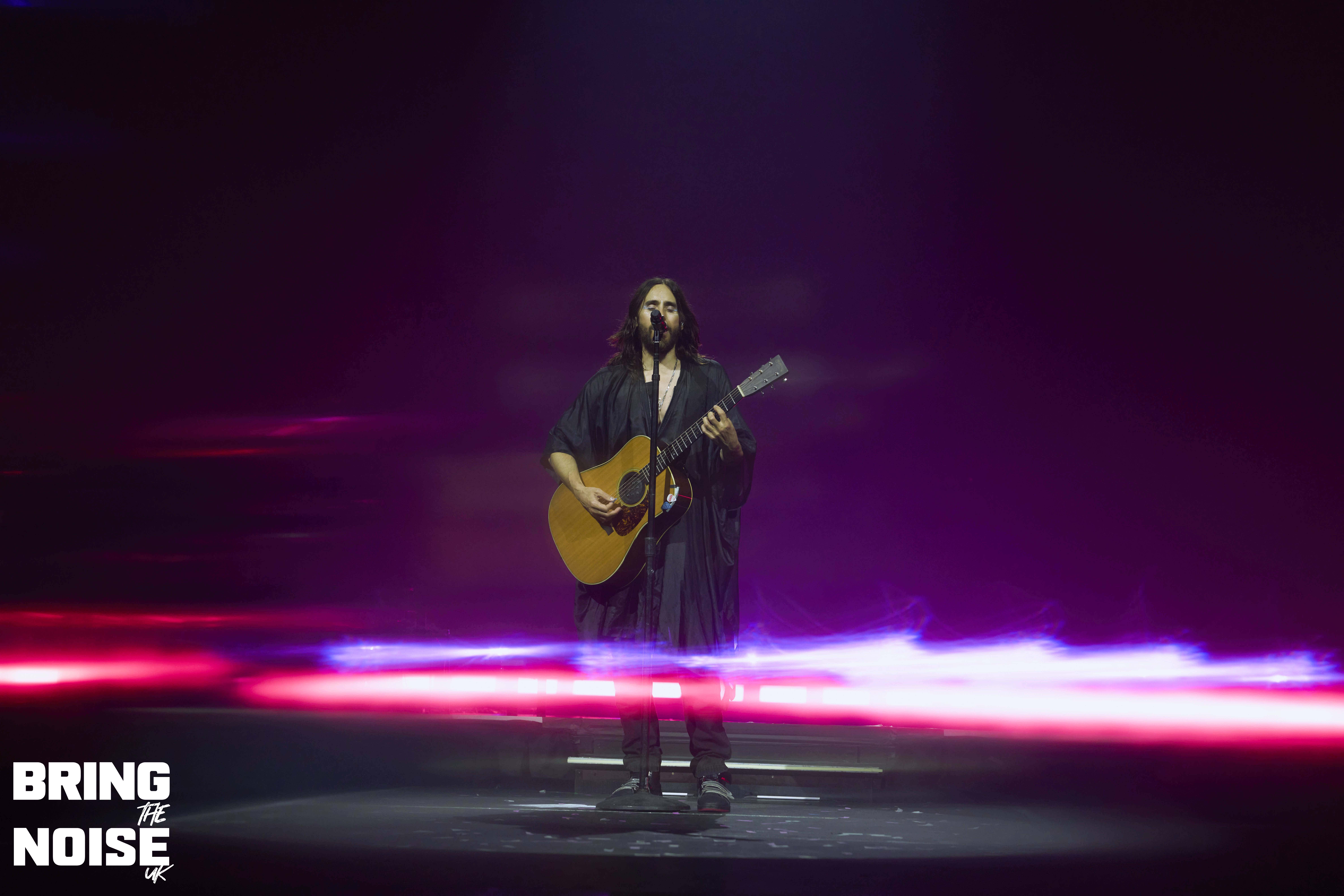 Before Hail To The Victor, Jared announces that their grandmother was Scottish “Hail to the Scots” he says, as guitarist Stevie Aiello goes off on a tangent with a magnificent guitar solo. Hurricane was interesting as the vocalist holds up a flare and he goes even further with the next track This Is War as the flamethrower comes out, we could actually feel the intensity of the heat coming from the flames up in the balcony seating! The crowd came to life for this one, the highlight of the set for us while the charismatic frontman decided to walk through the crowd during A Beautiful Lie, rock at it’s finest here! We then head into a few acoustic tracks as the band take requests from the fans with Alibi, The Kill (Bury Me), Was It A Dream and Attack being the tracks chosen, but only the chorus is played for each song perhaps not working out the way they had planned it to? The only cover during the set was Micky Ekko track Stay when dozens of balloons were released into the crowd, the guitar on this track were excellent. City Of Angels sees everyone get the camera torches on, the chants during this song reminded us of U2 track I Still Haven’t Found What I’m Looking For, we were then treated to the first play on the tour of Never Not Love You, great moment. The encore began with Stuck followed by The Kill (Bury Me) with Leto again inviting dozens of fans on to the stage which was now jam packed with smiling faces enjoying their moment of fame. The singer also requested that he wants 200 people up on shoulders, can it happen? Well they were damn close if not! The night ends with Closer To The Edge, a track from the 2010 album This Is War, the energy from all those fans still on the stage was delightful to see as everyone joined in for one final singalong “No, I’m not saying I’m sorry/One day maybe we’ll meet again”. A memorable end to the night then. The tour is heading to Europe and then back to the USA next month. 9/10