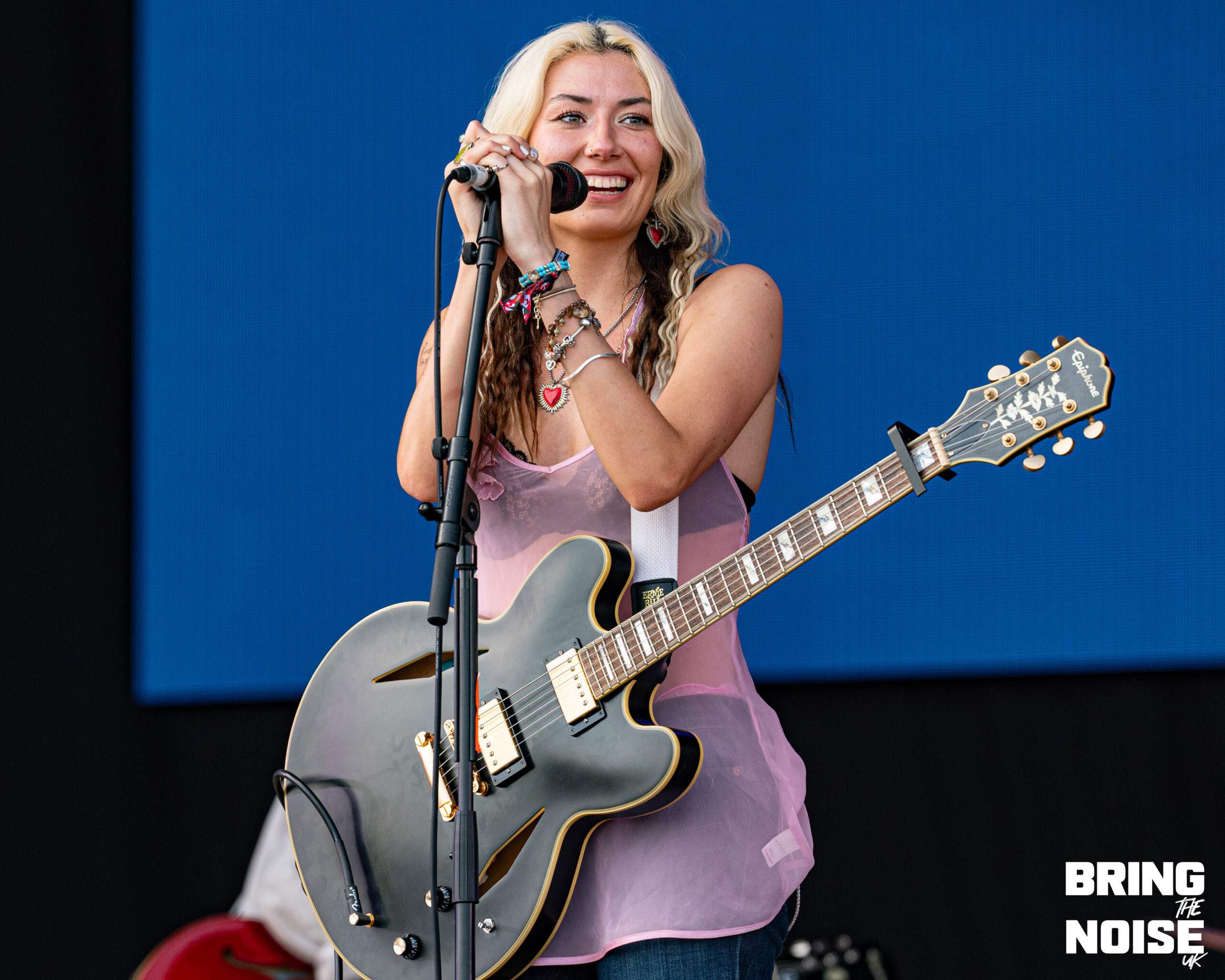 Our first visit to the Castle stage was for singer-songwriter Nieve Ella, having seen plenty about her online thanks to her loyal following we were excited to see what the hype is about. As The Things We Say took hold and her stunning vocals flowed through our ears, we completely understood the hype. The vocalist has sincere, onstage presence reaching out to those fans down front singing along each word passionately. With new EP Watch It Ache and Bleed set for release in October, Sweet Nothings and Ganni Top (She Gets What She Needs) were the taste of what’s to come; gritty pop-rock anthems with singalong choruses and plenty of crowd participation. As the set progressed it truly felt like Nieve Ella and her band came alive, this was the perfect warm up for their forthcoming support slot with Girl In Red. (NC)