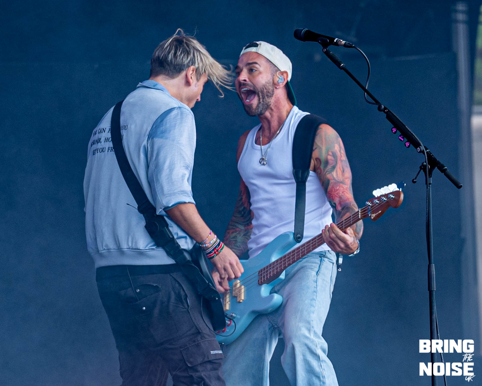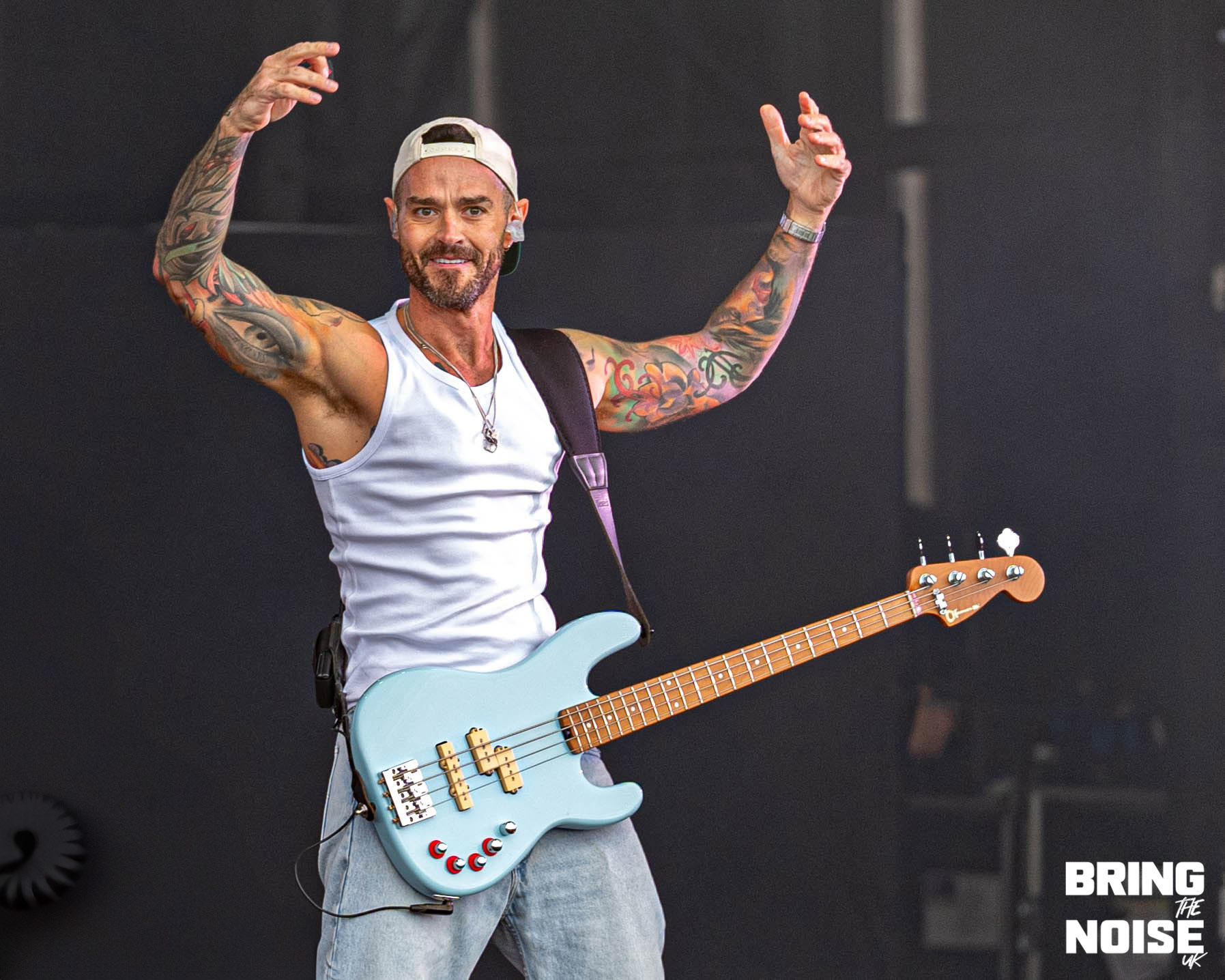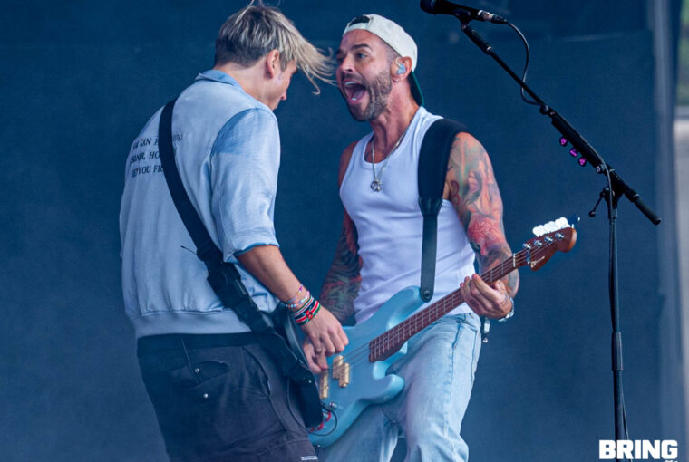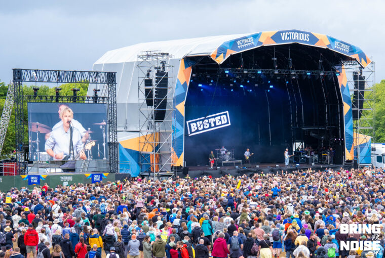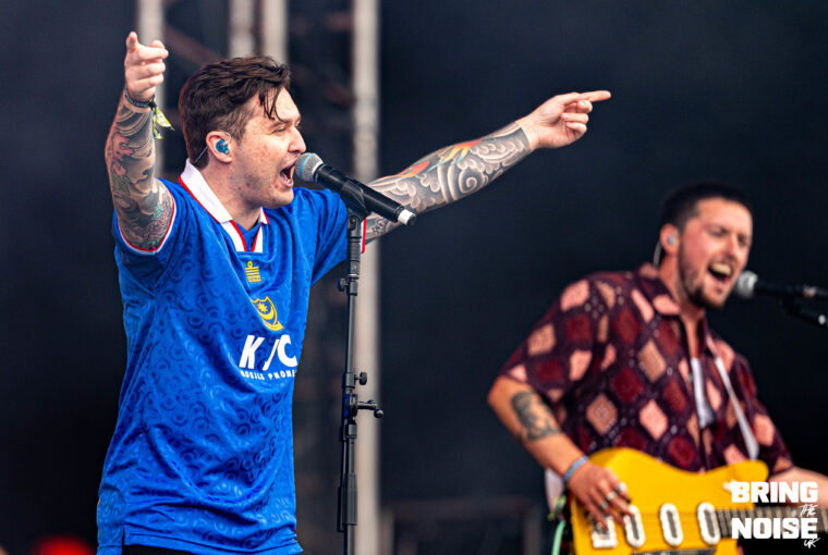 A not so secret set from Busted was up next over on the Castle Stage, having been teased and then confirmed the morning of the show there was a really fun energy over by the castle despite the impending clouds above us all. If you’ve seen Busted before you’ll know it’s impossible to not find yourself reminiscing on days gone by and having a great time with the ’00’s trio. Kicking off with Air Hostess, they soon found their stride as the crowd were passionately singing along to a band we didn’t think we’d be seeing this early on in the day at the festival. ‘Surprise we’re Busted’ explained the band before going into Thunderbirds Are Go! which soon saw the heavens open and the torrential rain pour down just after Matt Willis said it wasn’t raining. But did anyone care? Absolutely not. Whether it was Eddy Thrower evidently having the best time behind the drums or James Bourne spinning his microphone stand to get the crowd involved it was impossible to not enjoy yourselves. Slowing things down during their hit filled set with Sleeping With The Light On, the crowd were carrying the vocal section as Charlie Simpson’s guitar solo brightened up the grey skies. As they questioned whether anyone was born for the release of Crashed The Wedding, closing track Year 3000 saw the sea of fans braving the rain crouching down and doing the perfectly timed jump much to the bands delight. The weather might not have been on side but they’d more than made it worth it being drenched! (NC)