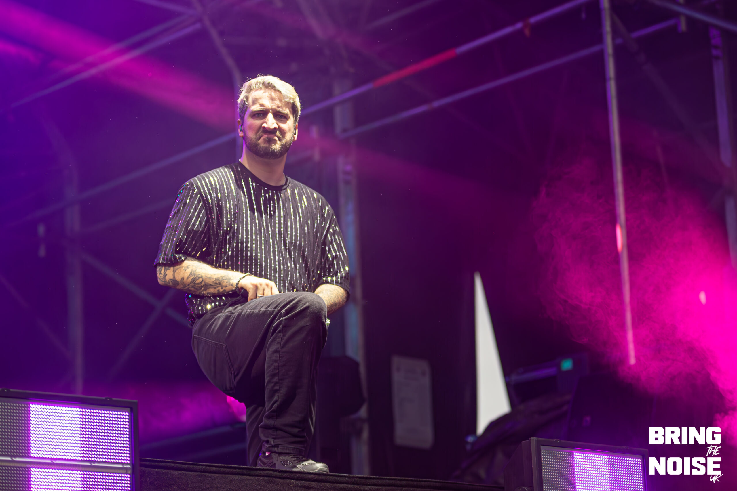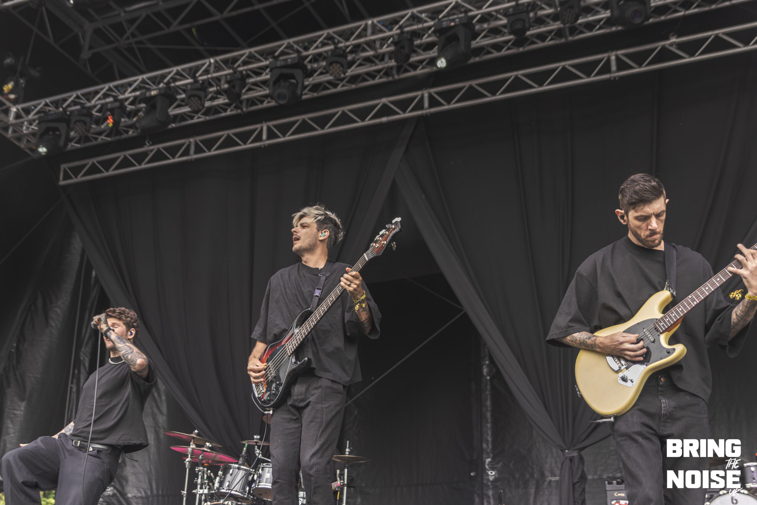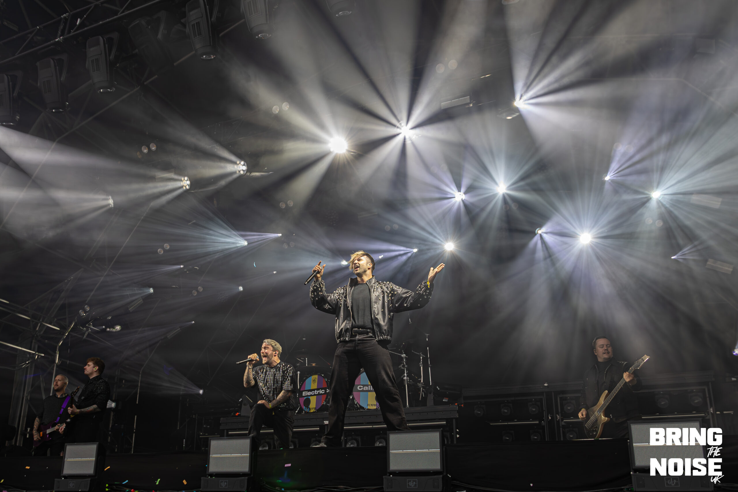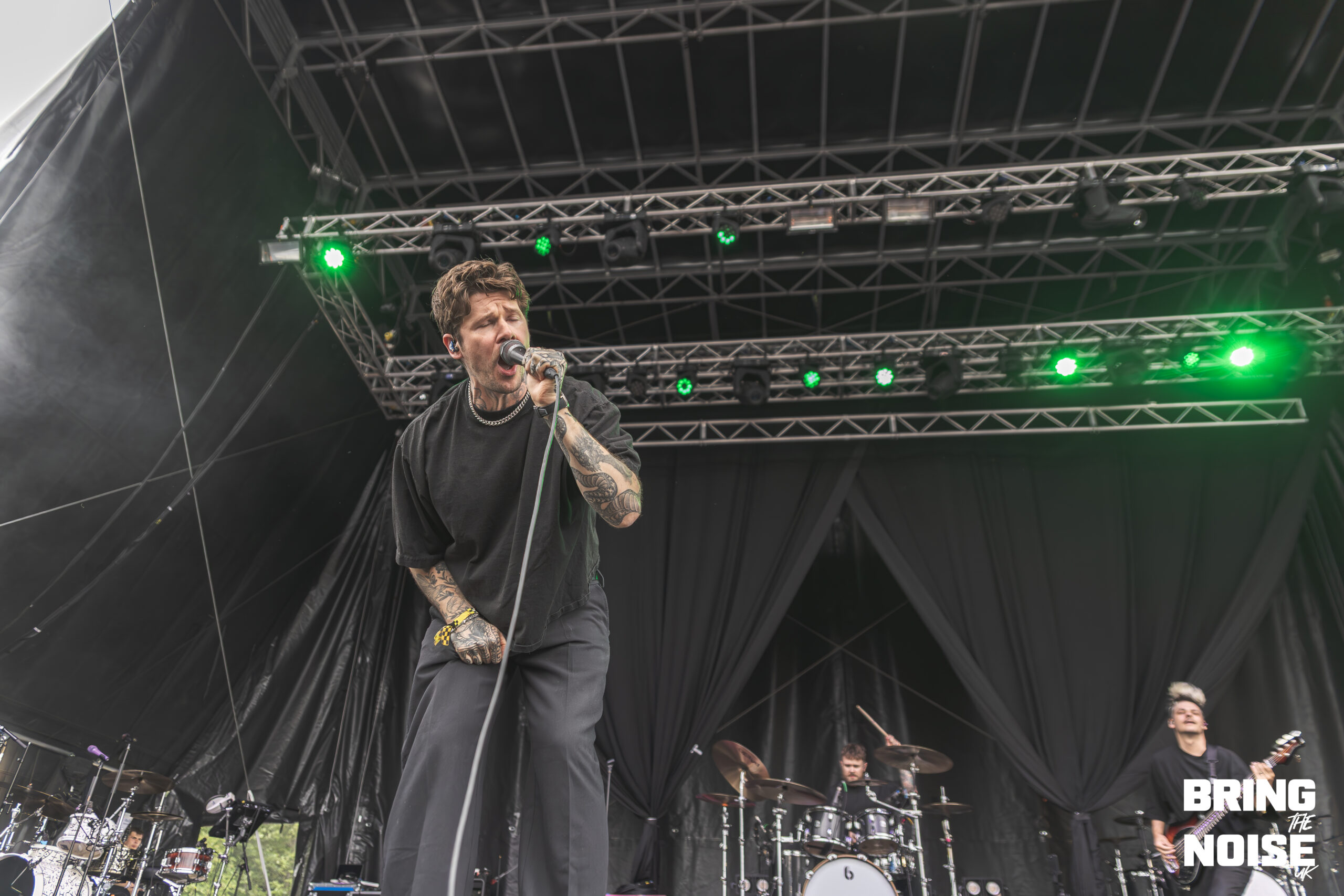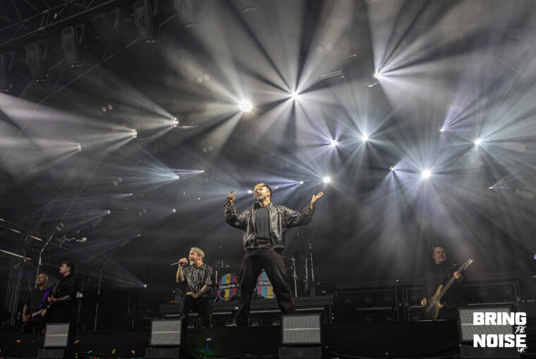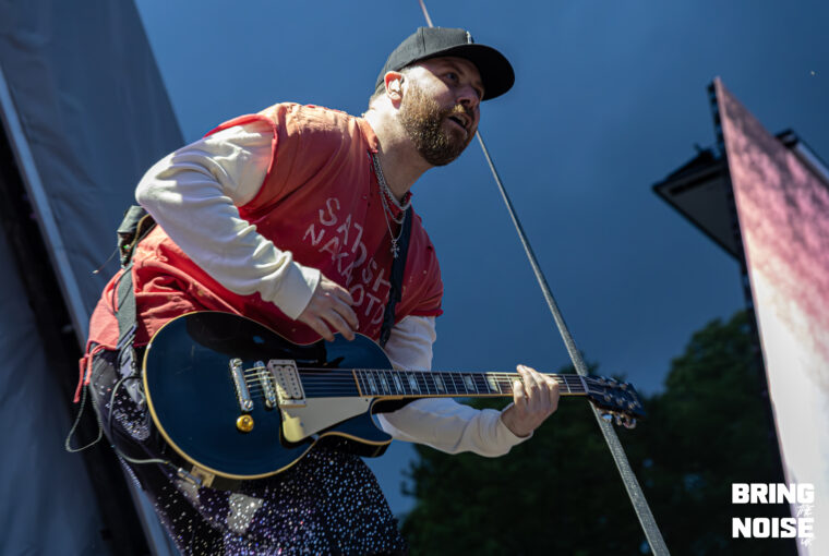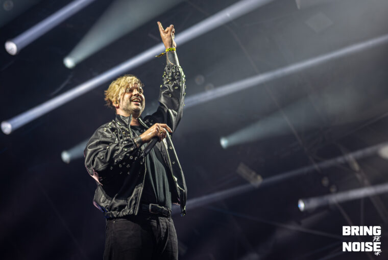 Wrexham’s very own pop-punk band, Neck Deep, performed on the Main Stage West. Known for their early-2000 pop-punk sound and exploring themes of personal struggles, social and political commentary, youth and nostalgia. Neck Deep made one of the most fun and biggest performances of the day. Think bubble blowing, foam bricks flying, comedy and flames shooting from the pyro. Even though it started to rain at this point, everyone in the crowd was eager to smile and cheer when the band came onto the stage. Heartbreak of the Century was the first song on their set, given that this song is full of emotional intensity, as it is about heartbreak and relationships.