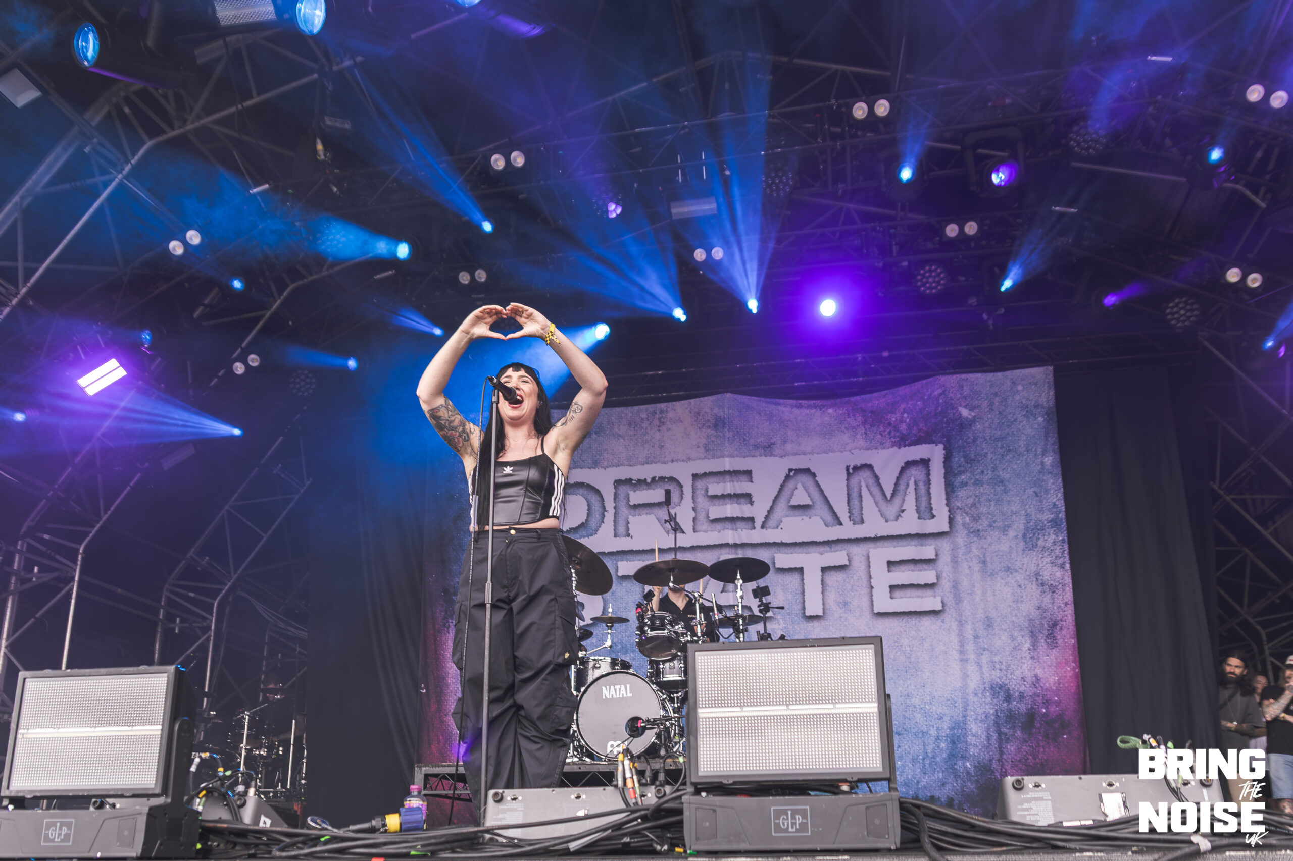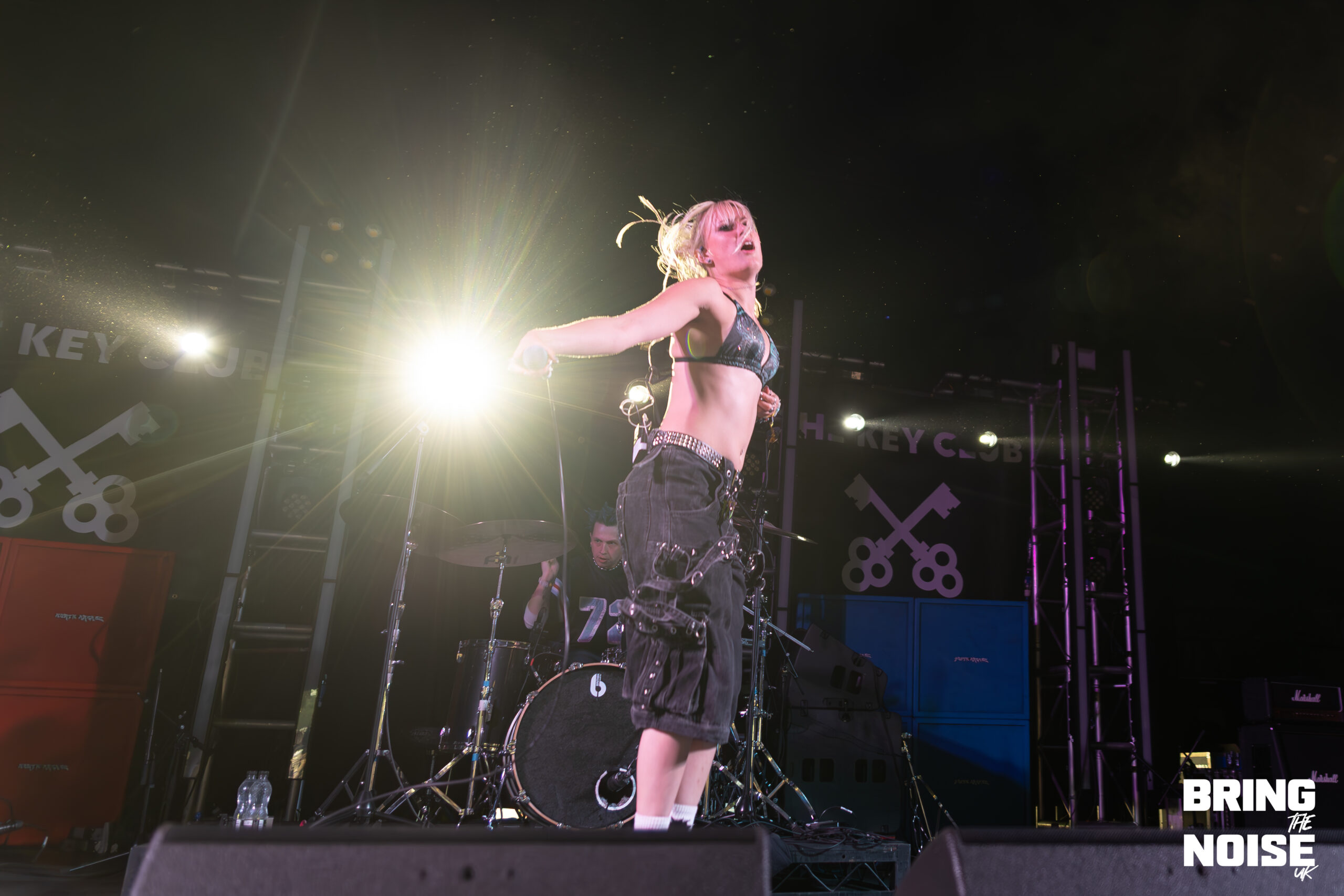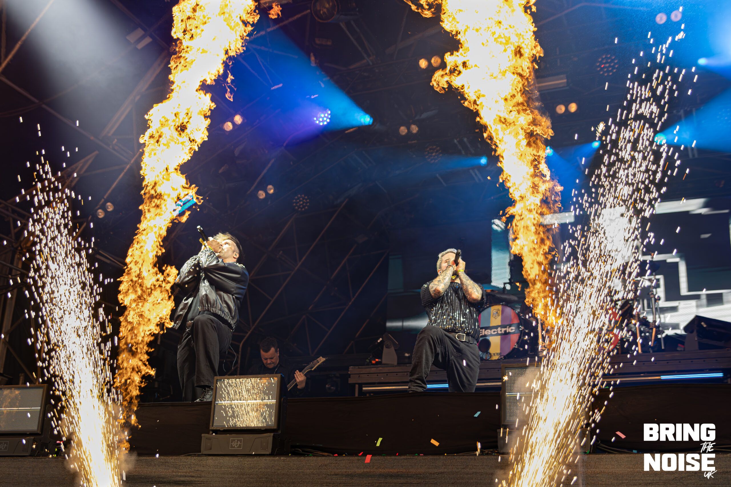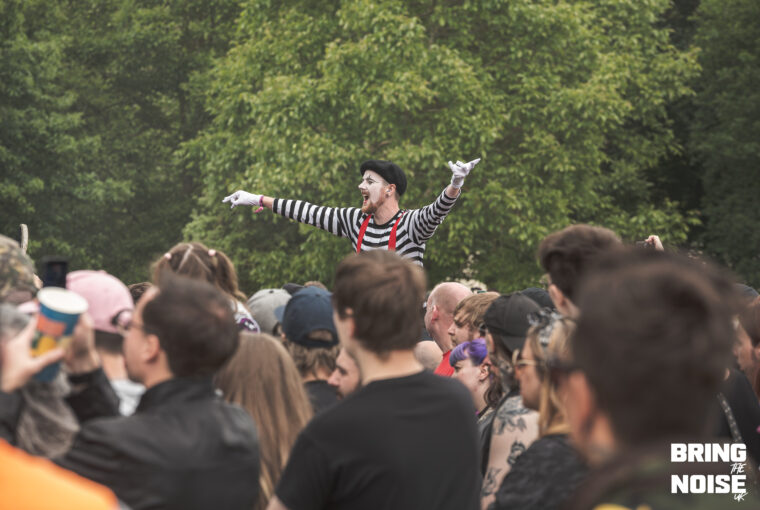 Starting off with seeing our first band of the day, Brighton’s alt-metal and hyper-pop duo Lake Malice at the Kerrang! Stage. Even though it was before midday, everyone was here nice and early, ready to kick-start the high energy that continued throughout the day. The band started off their set with Blossom, which is a fitting opener for the band because it establishes Lake Malice’s sonic identity from the start, making it an explosion of colour and defiance. It blends gritty riffs with catchy hyper-pop melodies, accompanied by choreographed dancers that keep the performance engaging and energetic. Giving it a J-pop sense of feeling, which the band themselves have said to be influenced by Japanese anime when it comes to their style and writing.