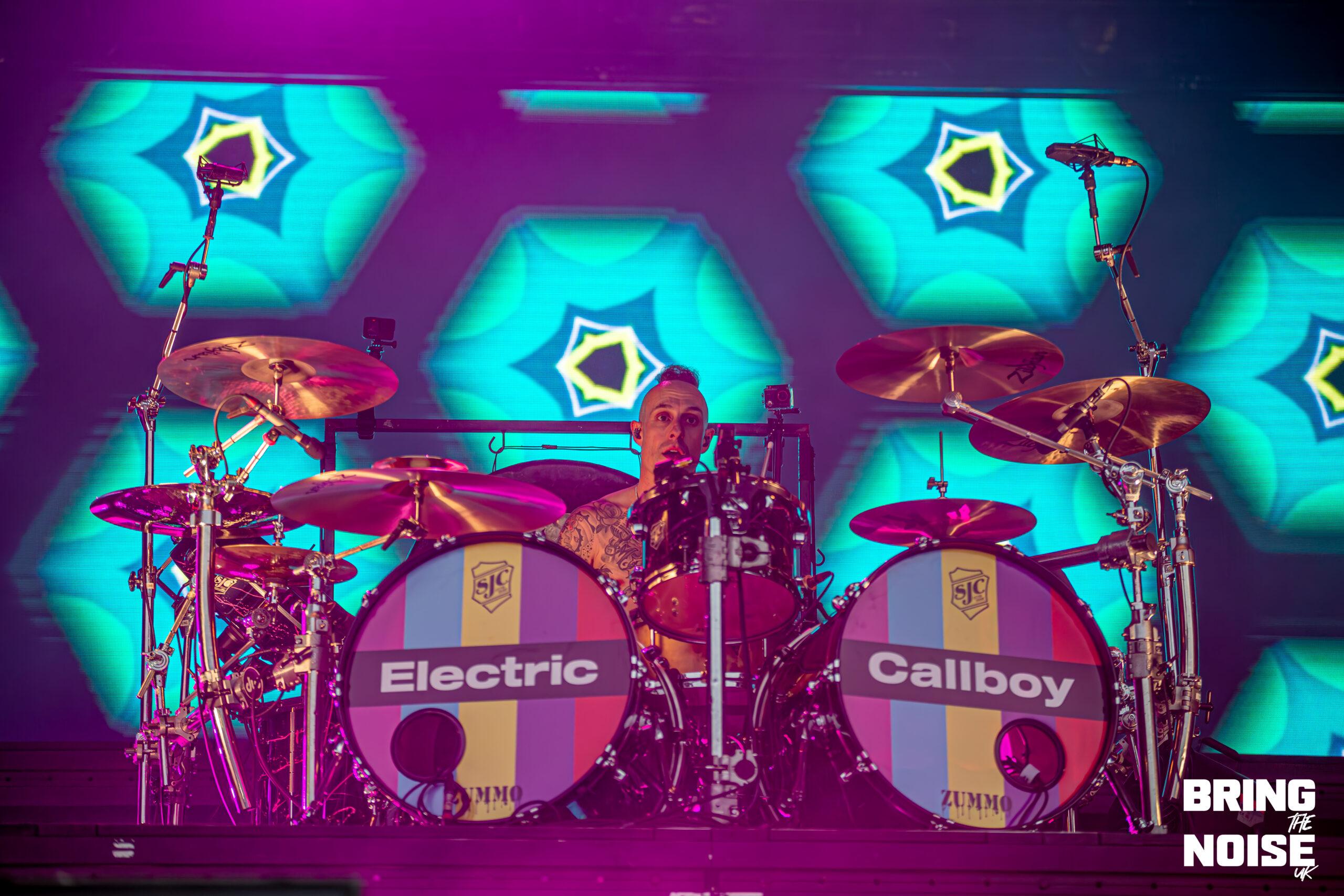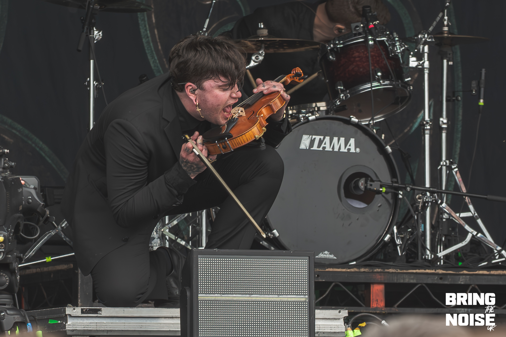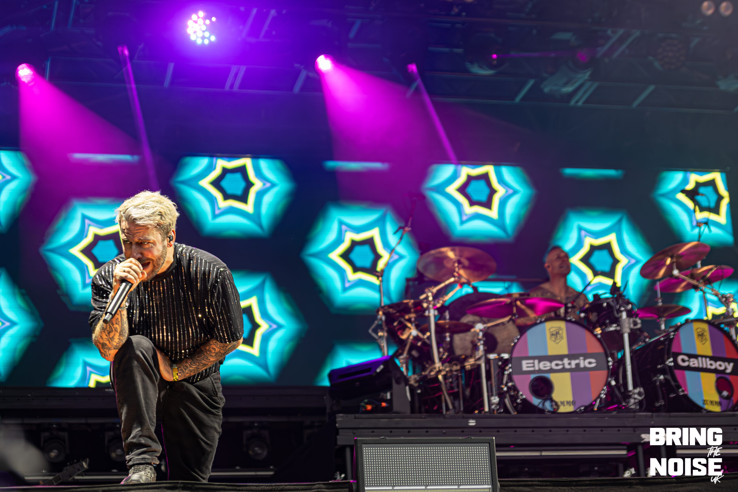 Starting off with seeing our first band of the day, Brighton’s alt-metal and hyper-pop duo Lake Malice at the Kerrang! Stage. Even though it was before midday, everyone was here nice and early, ready to kick-start the high energy that continued throughout the day. The band started off their set with Blossom, which is a fitting opener for the band because it establishes Lake Malice’s sonic identity from the start, making it an explosion of colour and defiance. It blends gritty riffs with catchy hyper-pop melodies, accompanied by choreographed dancers that keep the performance engaging and energetic. Giving it a J-pop sense of feeling, which the band themselves have said to be influenced by Japanese anime when it comes to their style and writing.