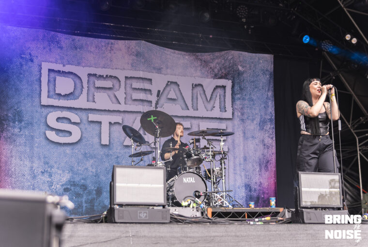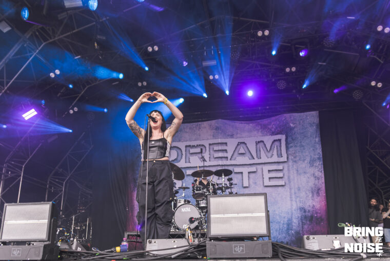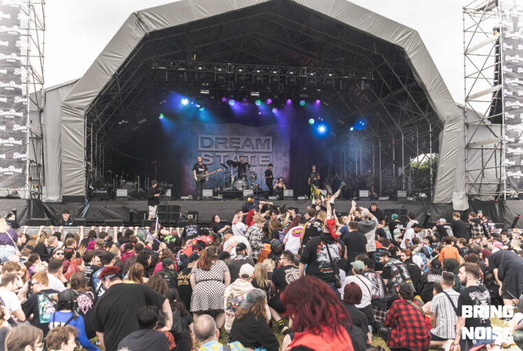 Next up was Dream State, a four-piece independent alternative rock band from Swansea. They took to the Main Stage East and started their set with Still Dreaming, making for an emotionally uplifting and anthemic track, where vocalist Jessie Powell’s brings charisma and energy to the stage and perfectly introduces her soaring vocals to the audience. During Bloom, Powell exclaimed that, “It’s time to wake up and I wanna see the biggest mosh pit”. The crowd followed suit and formed a circle pit, where even a child joined in by sitting on their parent’s shoulders, showing that festivals can be a place where families form memories.