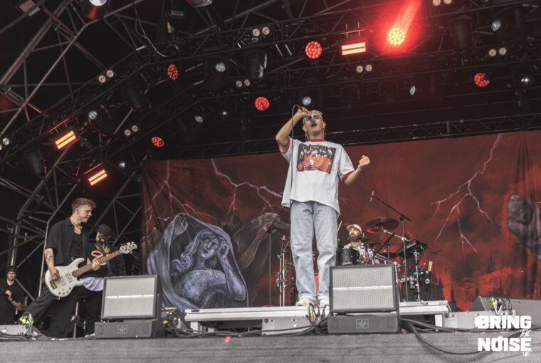 French powerhouses LANDMVRKS made their presence known on the Main East Stage. As a band they never fail to disappoint the crowd with their fierce and energetic performances that get the audience moving by forming a mosh pit. They started their set with Creature, which sets the mood for an aggressive and fast-paced tone and includes a soaring and melodic chorus. Vocalist Florent Salfati shines through in this song because he goes from the of being emotionally driven to then showing full force with his screams, paring them with drilling guitar tones and dynamic drumming, which gives the crowd the perfect opportunity to headbang. Their newer song Sulfur starts off with a guitar solo then leads into a dominating sound of drumming, the song showcases a raw and visceral sound, especially when it comes to the chorus. They end their performance with Self-Made Black Hole, making it the last time that they can be destructive on the stage and where the crowd can match that energy during the insane breakdowns. Overall, LANDMVRKS are made for playing on a festival stage and we are excited to see what comes next for them in the future.