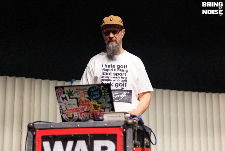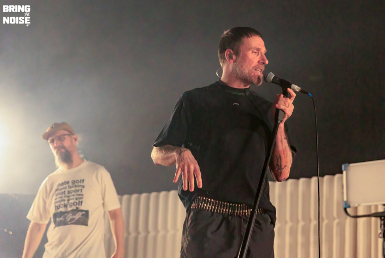 Jason Williamson is a complete menace on stage. One moment he is practically trying to swallow the microphone, the next he is dancing like a man possessed, all while delivering a relentless verbal barrage. Andrew Fearn dances at the back of the stage, providing the wall of sound for Williamson to feed off. There is very little banter between band and crowd, as the pair work their way through the 25-song strong set. UK Grim thunders through the theatre, making the whole place vibrate with its gut-pumping tone. Older tunes Bang Someone Out and a stretch back to An Old Ditty are greeted like old mates turning up in the pub unexpectedly.